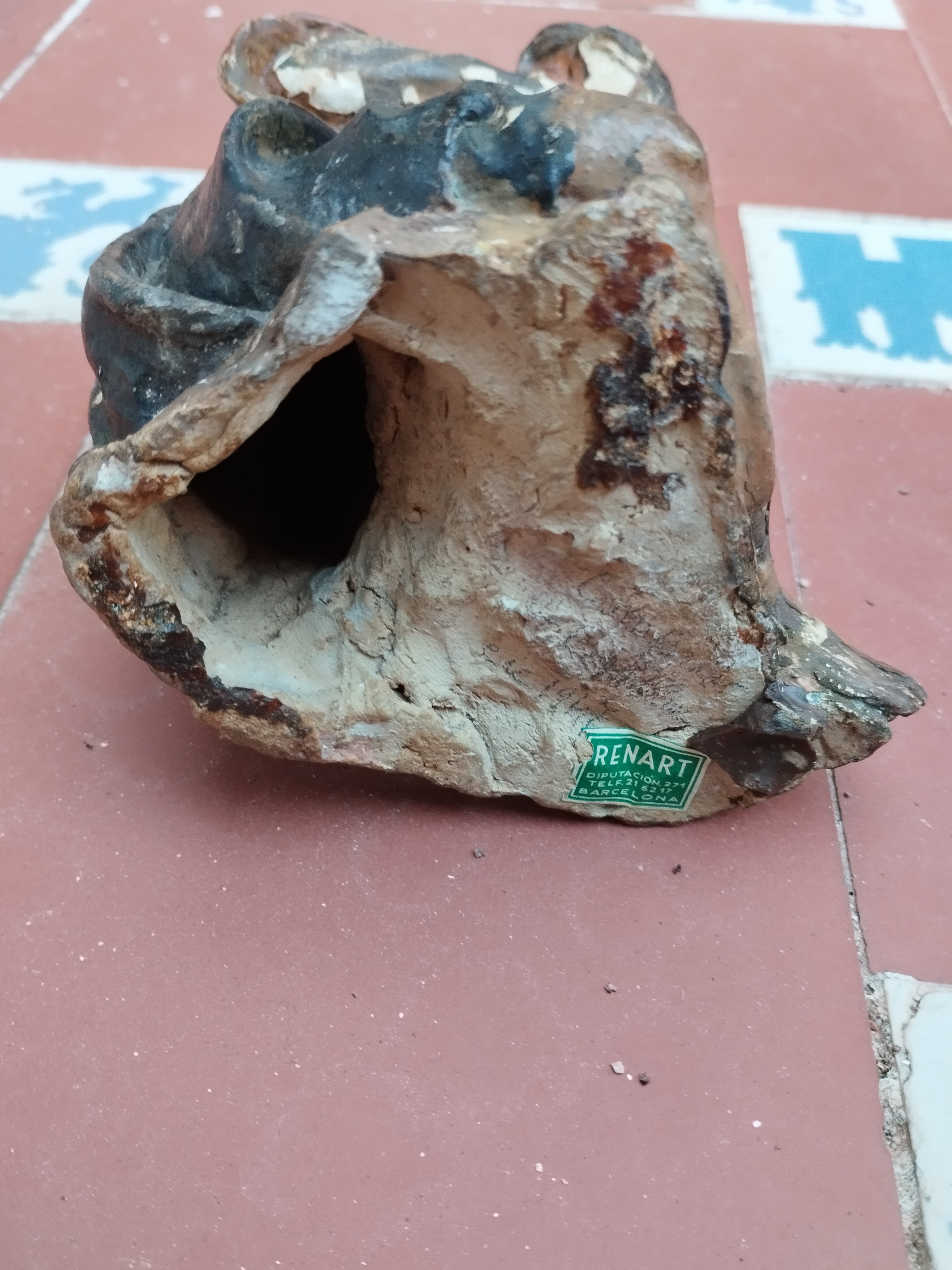 Imagino que te habrás fijado en las anotaciones a mano, hechas a lápiz o grafito. No sé si las habrás descifrado completamente, pero también hay números visibles. La más clara en las fotos es la de la última línea, donde se puede ver una fecha: 1947. Aunque no es completamente nítida, parece distinguirse la palabra "lote" seguida de un número, lo que refuerza la idea de que estamos ante una figura de producción en serie, probablemente parte de un lote de figuras modeladas, tal como indicaría el sello del taller Renart & Cía. Esto sugiere que la figura no es un original único, sino una réplica basada en un diseño de Dionís Renart, realizada dentro de un proceso más industrial, probablemente destinada a la venta en serie. El hecho de encontrar la fecha de 1947(también podría ser el n° del lote) y la palabra "lote" reforzaría esta hipótesis, apuntando a que formaba parte de una producción posterior, dentro del marco del taller de escultura y decoración Renart & Cía, que replicaba originales.