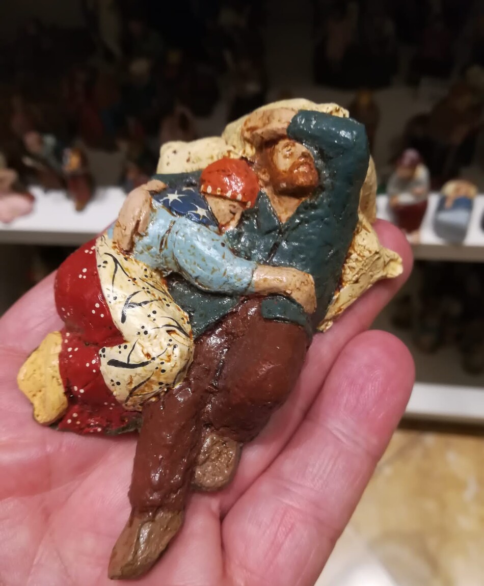 Así han denominado Ester Font y Laura Baldrich a estas dos nuevas figuras para estas Navidades, la abuela y el abuelo ... versión en pequeño formato [el de Laura y Ester], del molde, del Silvano de los primeros fríos... ahí las tenemos, contenidas en el espacio, aún asidas a la mano que las creó, dispuestas a formar parte de una escena tierna de Navidad, de un rincón del hogar, de una ventana abierta a páginas de evangelio escritas en el siglo XXI, dando sentido a la grandeza de lo pequeño... modeladas a punto de ser insufladas por la vida que recrean detenidas en el barro y la policromía...