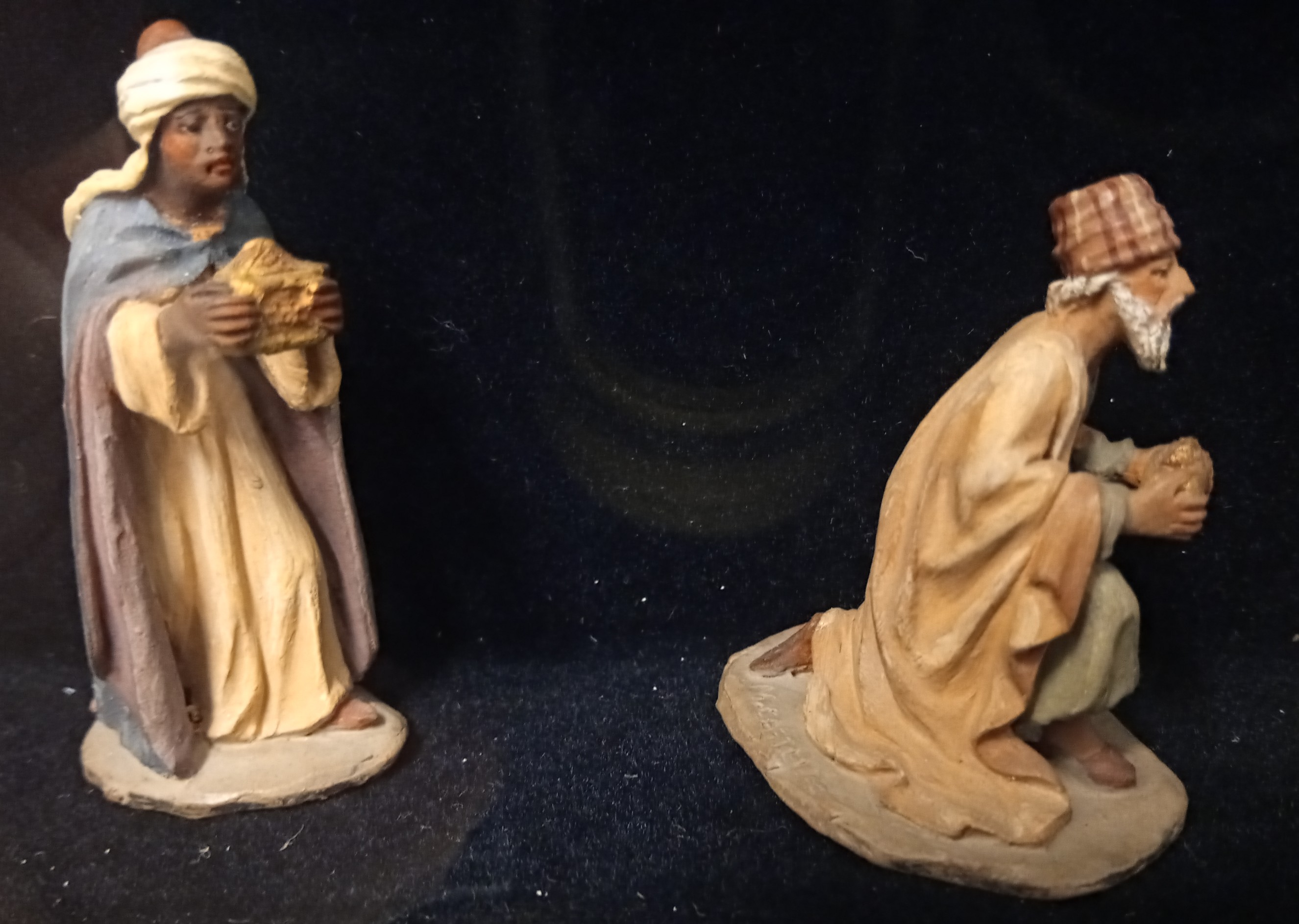 Como dice *Bethlehem* ..."Y en cuanto a medidas veo alguna de 3.5, de 5, de 8, 11 y de calvaris de 12."...y siguiendo con la comparativa con los palillos de Martí, figuras por referencias visuales de 4,5 a 5cms. en la colección de la Asociación de Belenistas de Madrid en el Museo Nacional de Artes Decorativas.