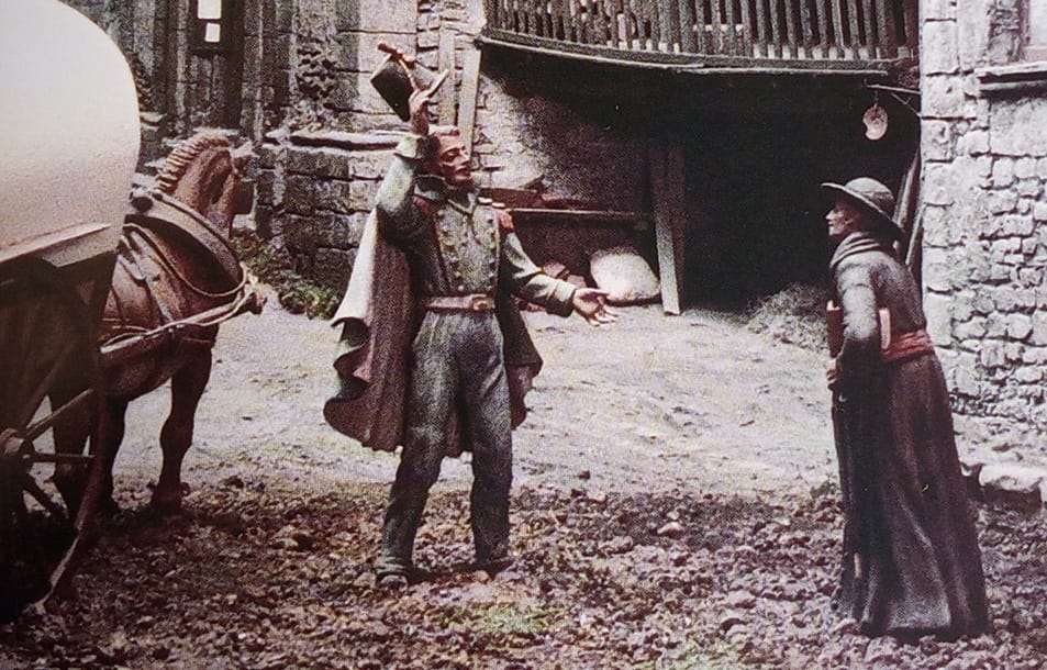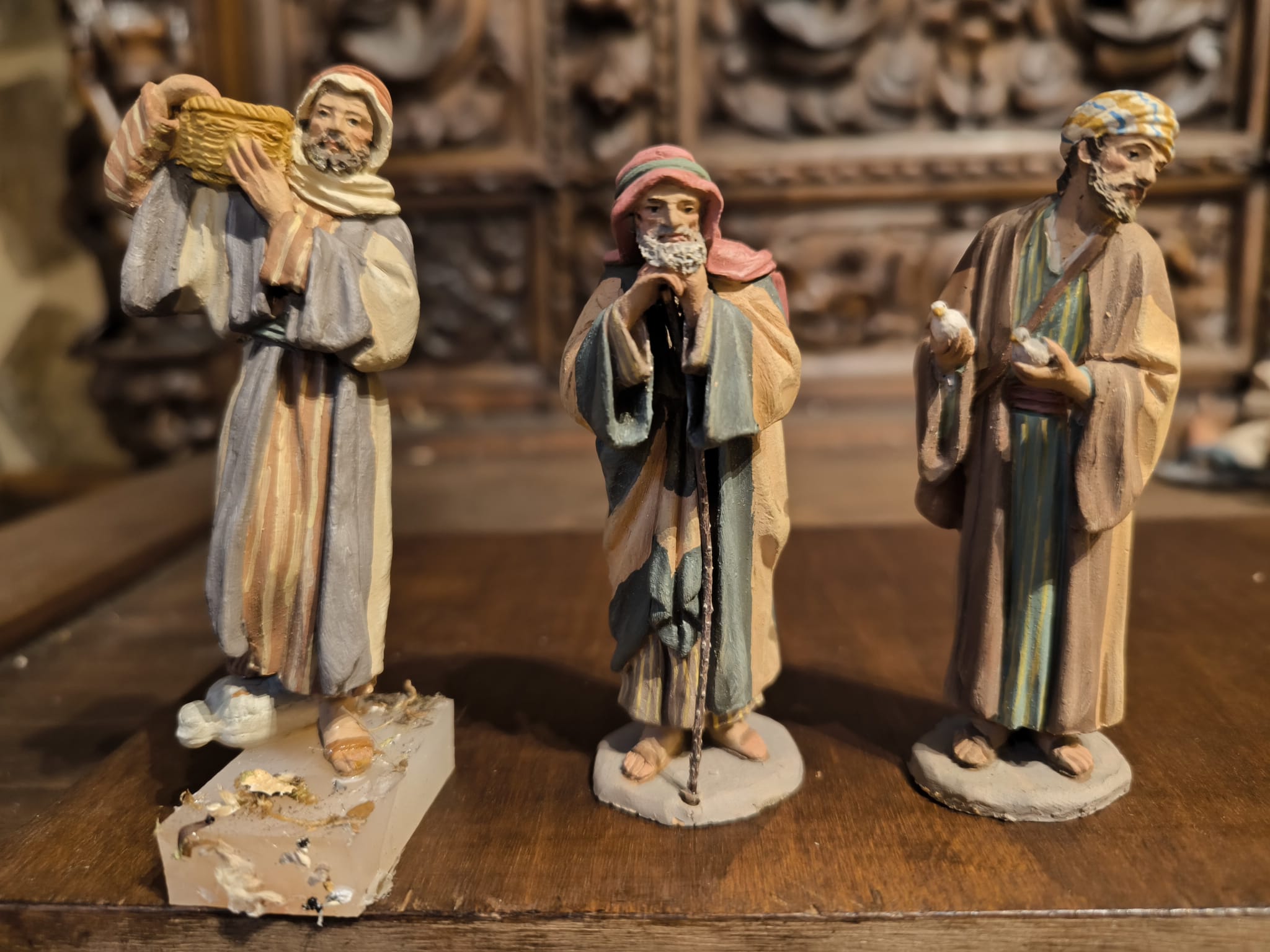 Detalle de algunos personajes('palillos' de Martí Castells) de la escena del diorama también de Folch realizado en la Iglesia Betlem en 1981