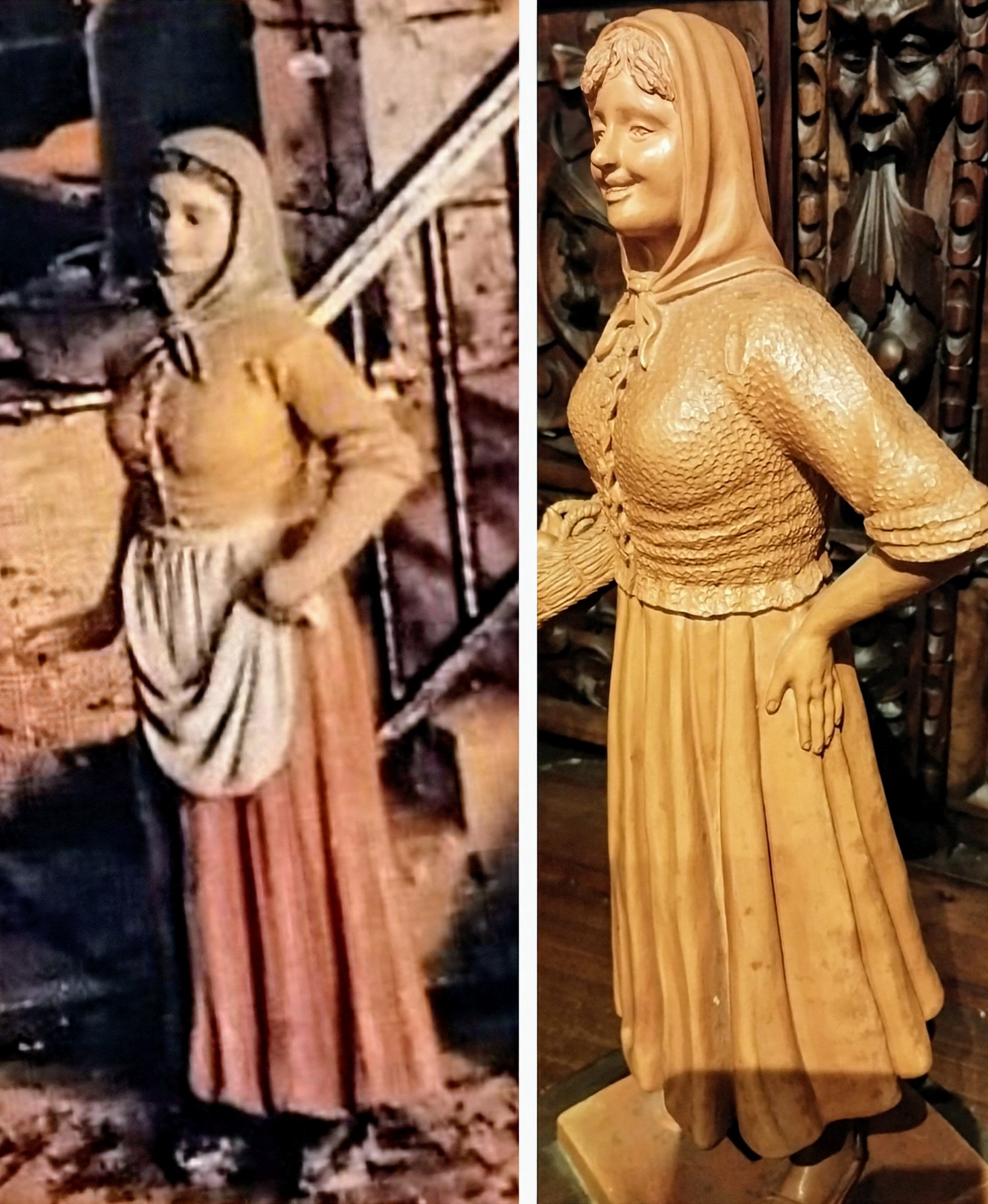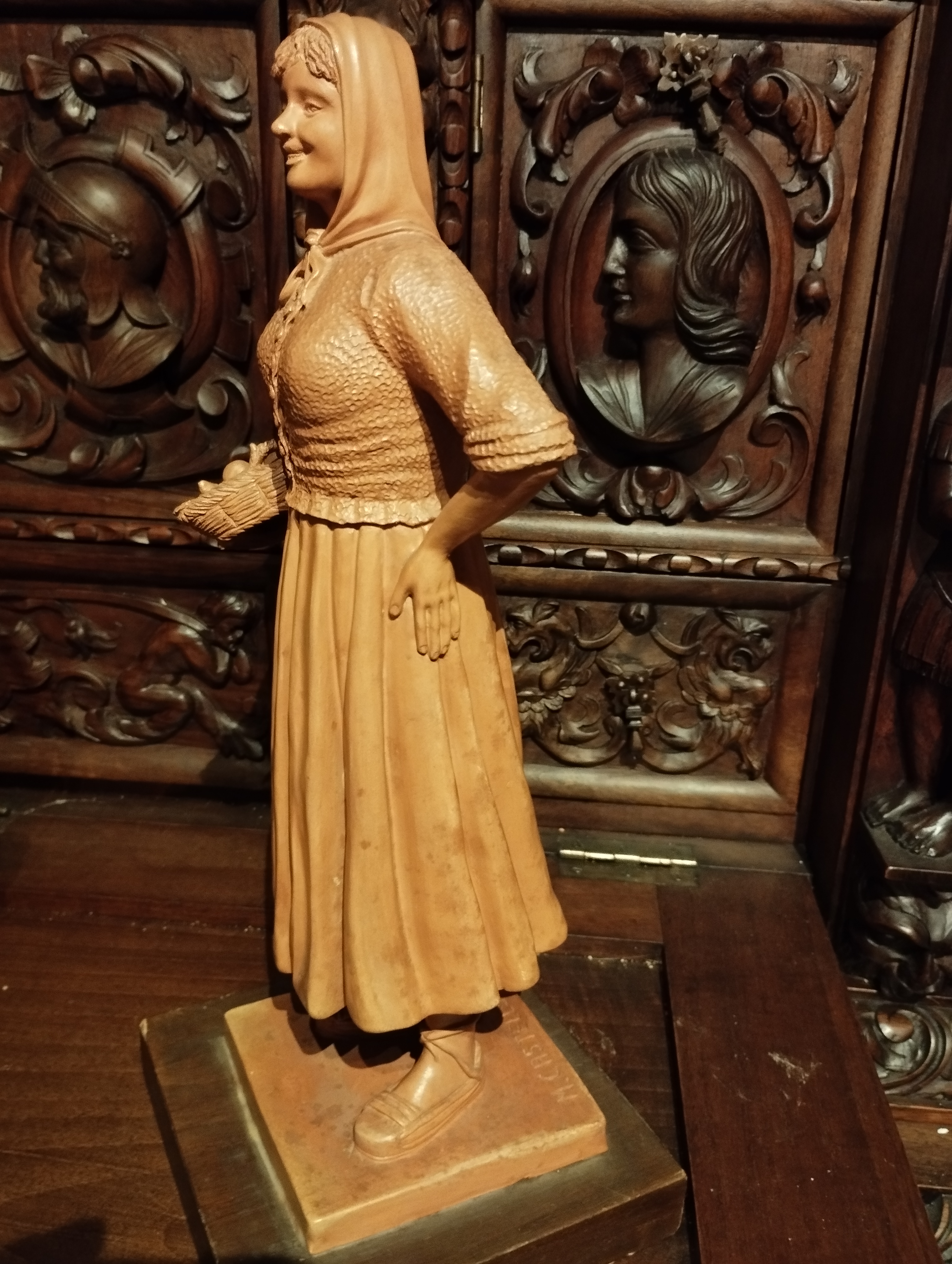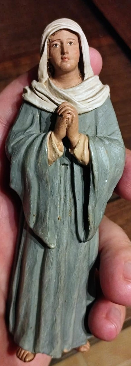 IMG_20250604_231745.jpg (3637KB - 54 descargas)Enhorabuena Gustavo por la adquisición de esta figura. Se trata de una campesina de gran tamaño (más de 30 cm), muy bonita, detallada y decorativa. Martí realizó grupos regionales y escenas populares por encargo, por lo que esta pieza podría formar parte de alguna colección. Es un personaje que recuerda a los presentes en dioramas con motivos navideños vernáculos, como el caga tió o el tió de Nadal, entre otros.