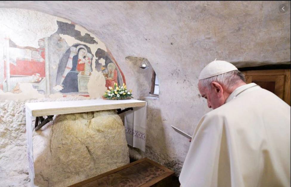 Pienso que la Carta Apostólica firmada por el Papa Francisco en ese lugar el día de la fotografía es un documento imprescindible para quiar a los belenistas en nuestra tarea