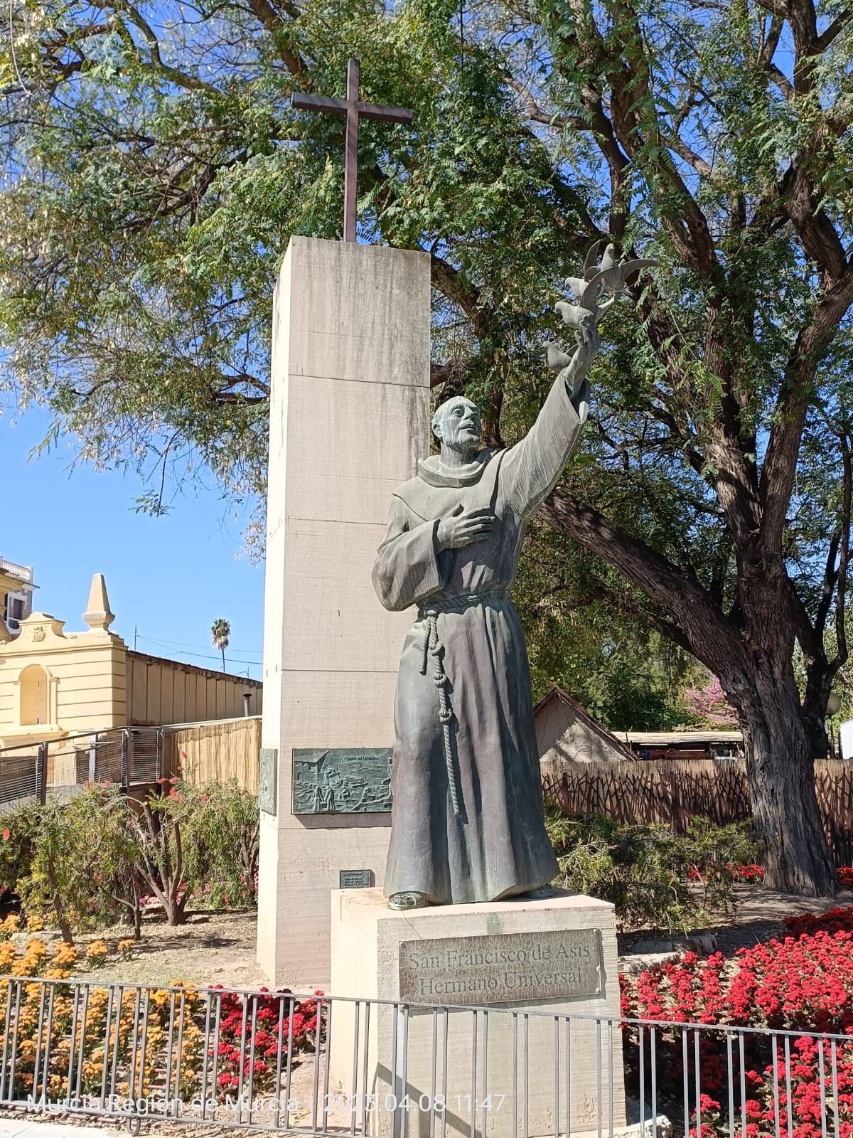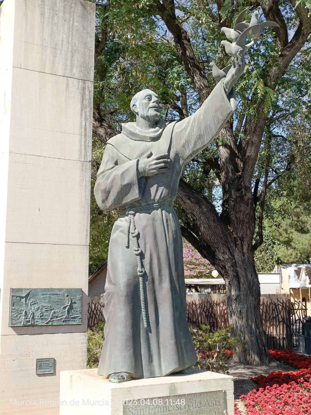 escultura en la entrada principal del Jardín del Malecón, lugar donde antiguamente se situó el convento de los Franciscanos, cerca de la Casa Consistorial y la plaza del Cardenal Belluga.
