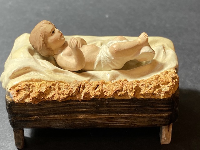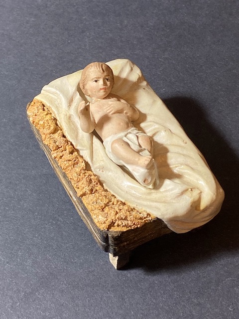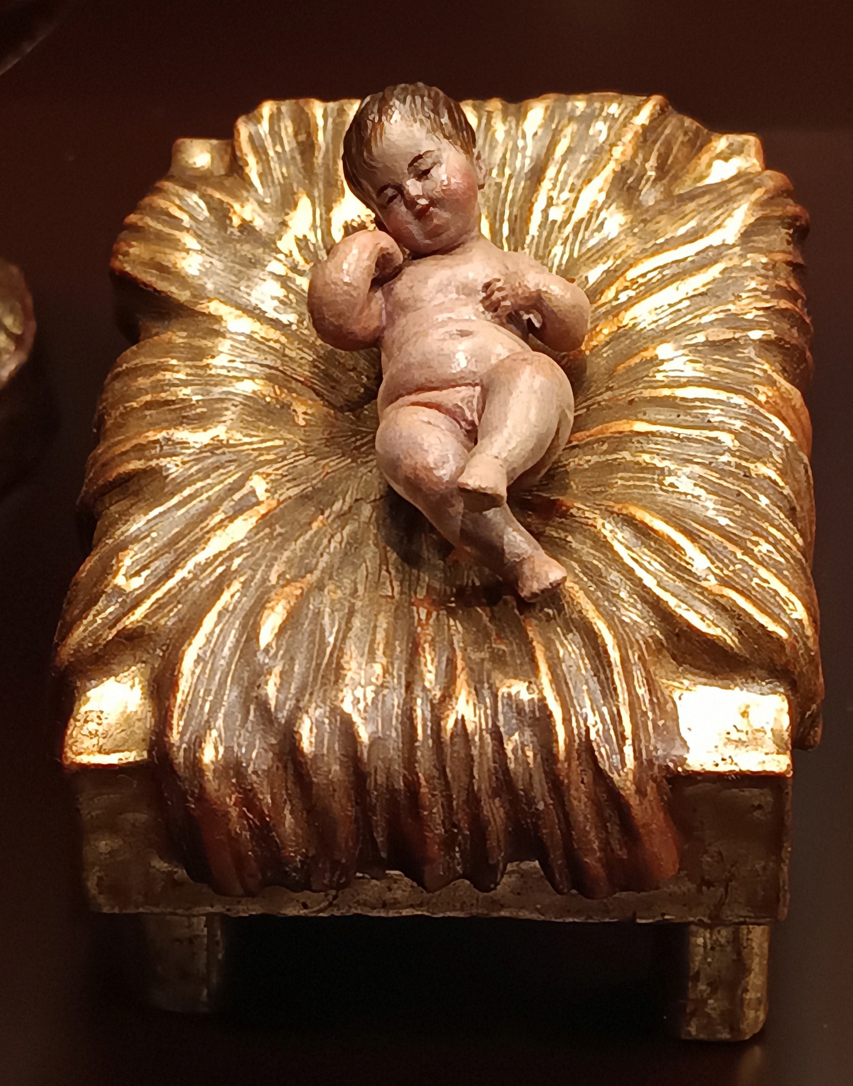 Realmente es un trabajo bastante fino y cuidado, no solo en la figura del Niño, sino también en la cuna. Es interesante y destaco el juego de texturas entre la paja rugosa y tosca junto con los pliegues marcados y finos del paño, así como la madera del pesebre.