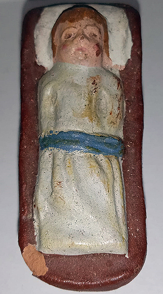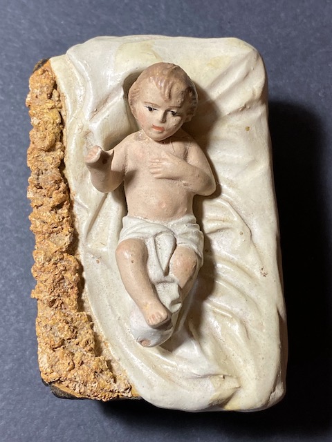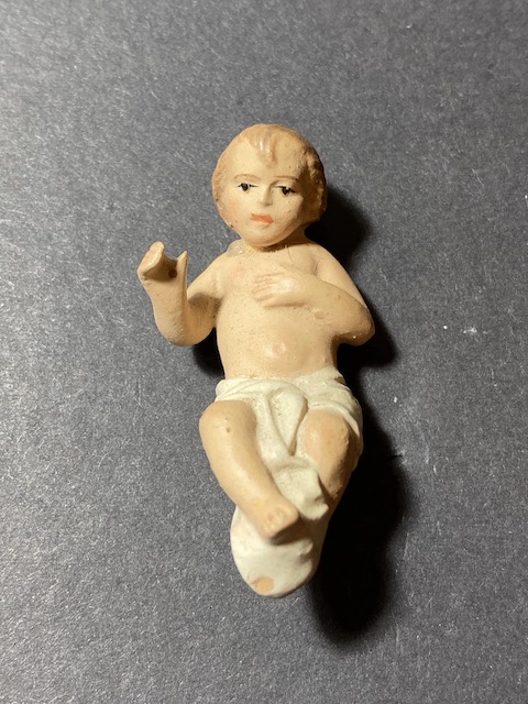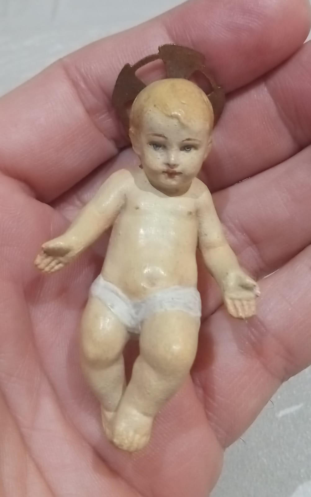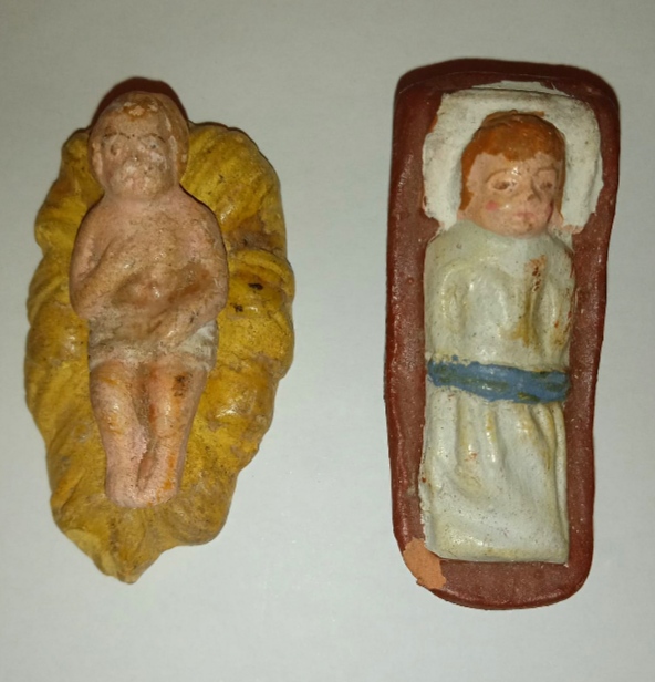 Subo una curiosa figura de Melcior Domenge del Niño Jesús que lo representa envuelto en tela como el cordero Pascual, como se comentaba en documentos subidos en el hilo Anuncio a los pastores por Emilí Solé, siendo sobre todo figuras populares y de estilo "localista" como se puede observar en su propio hilo .
