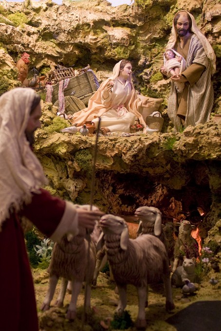 Pastores, bueyes y mulas, ángeles, más pastores... Reyes que vienen, Reyes que se ven a lo lejos, pajes que se acercan, ángeles, ángeles y más pastores... María y José, ángeles y pastores, de todos los colores, posturas, con miles de atributos, haciendo y deshaciendo cosas de la vida rutinaria... ángeles, Reyes (ahora adorando...), pastores, animales,... y el Niño Jesús .