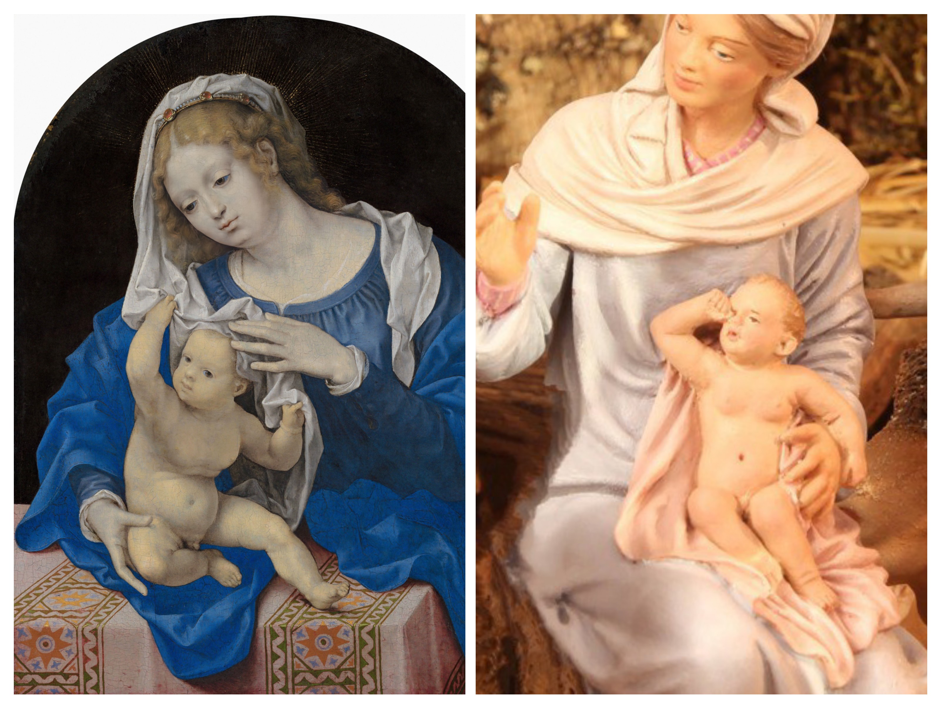 ¿Existen figuras de belén donde el Niño Jesús aparece explícitamente desnudo, como en el arte renacentista?