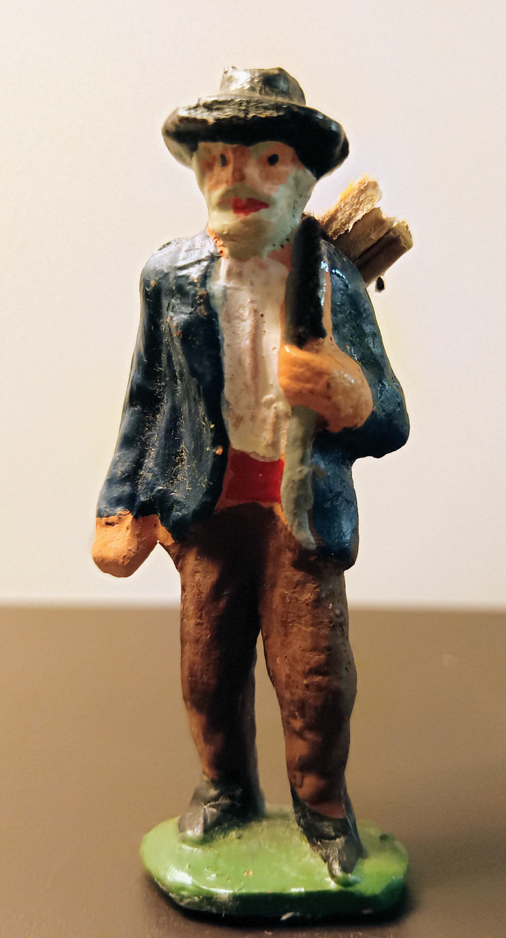 'Leñador', figura de belén popular de un autor poco conocido o difundido, como es Josep Llobet i Campins. Nueva entrada a vitrinas en forma de presente de un buen amigo.