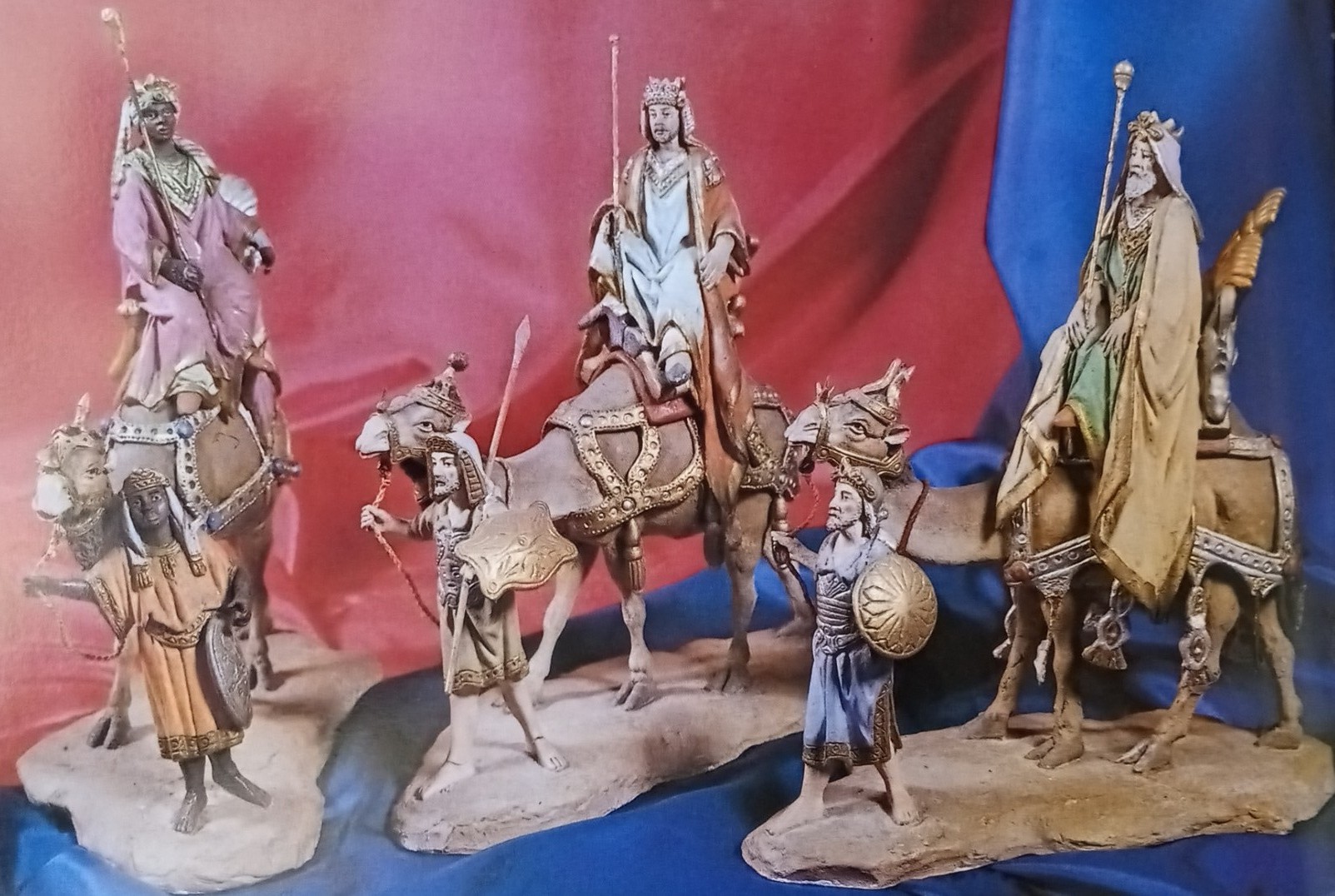 Es claro que el autor es Masdéu, son Reyes muy parecidos algo más sencillos al no llevar a los niños en la grupa de las monturas, sin duda salidas de su taller como se le ve en la foto en blanco y negro, ¡una cabalgata completa! y a color, posiblemente se encuentre en el Museo Etnológico de Barcelona...