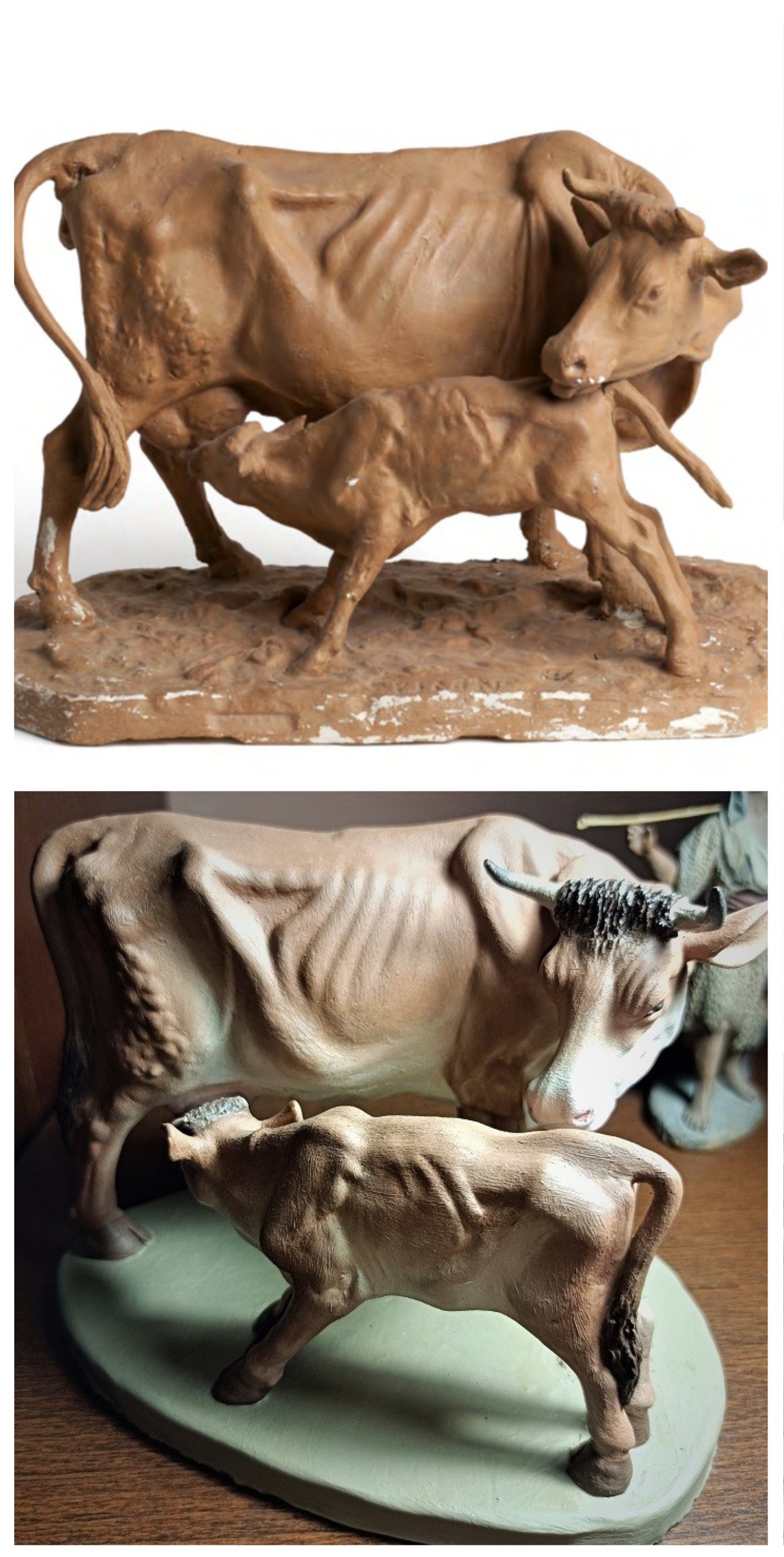 Cabalgata de Reyes. S.Masdeu~2.jpg (371KB - 104 descargas)Conexiones y cronología coleccionista con la muy conocida 'familia bovina' de figuras de molde de S. Masdéu, en 2019 en un lote descubrí la vaca original dañada , sin cuernos y sin cola, en 2020 la envío a restaurar y con tiempo (y poso como un buen vino) entra en la colección en el 2021 la vaca restaurada y también el buey de la misma serie de molde Masdéu vía Pruna.