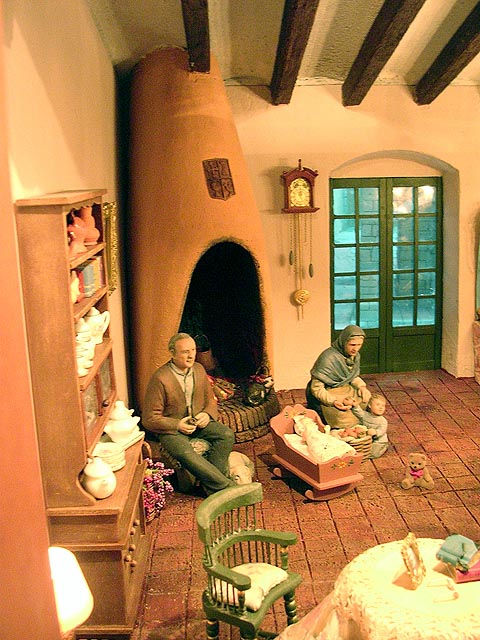 la mujer de la cocina es no hebrea, pero encaja perfectamente, y el niño abrazando el burro es hebreo pero puede ponerse en cualquier belén contemporáneo.
