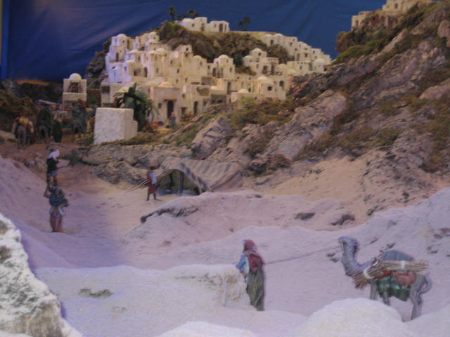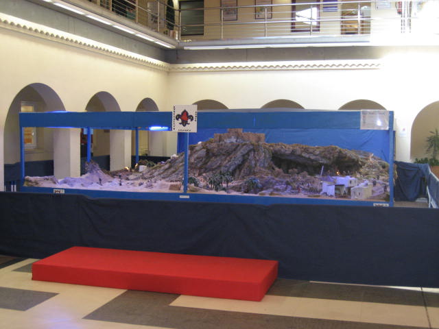 El belén cuenta con una de las zonas de representación de desierto que más me han gustado hasta el momento, asi como de un pueblecito de las época asentado en una montaña muy logrado.Felicidades al grupo scout que lo ha realizado.