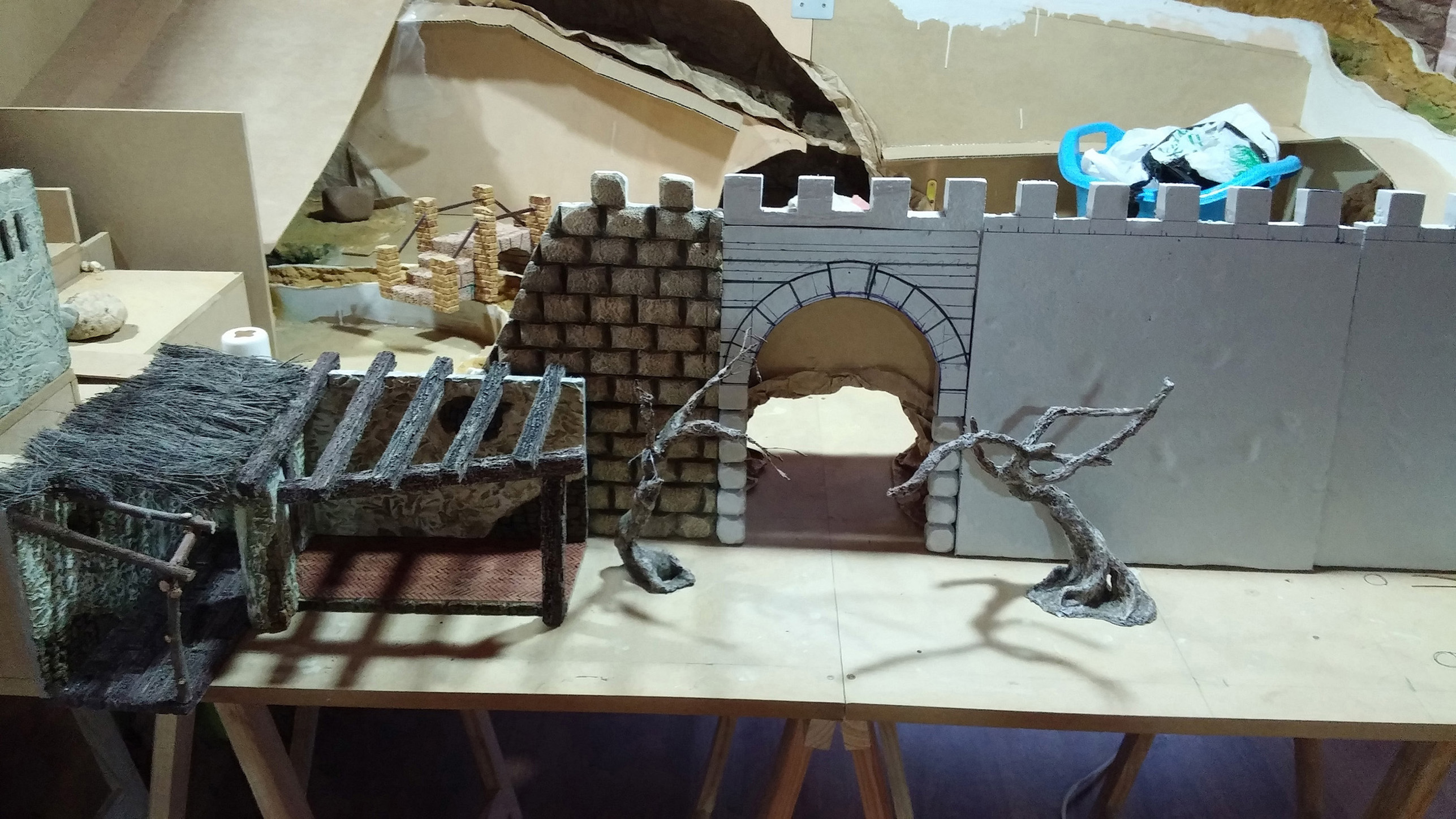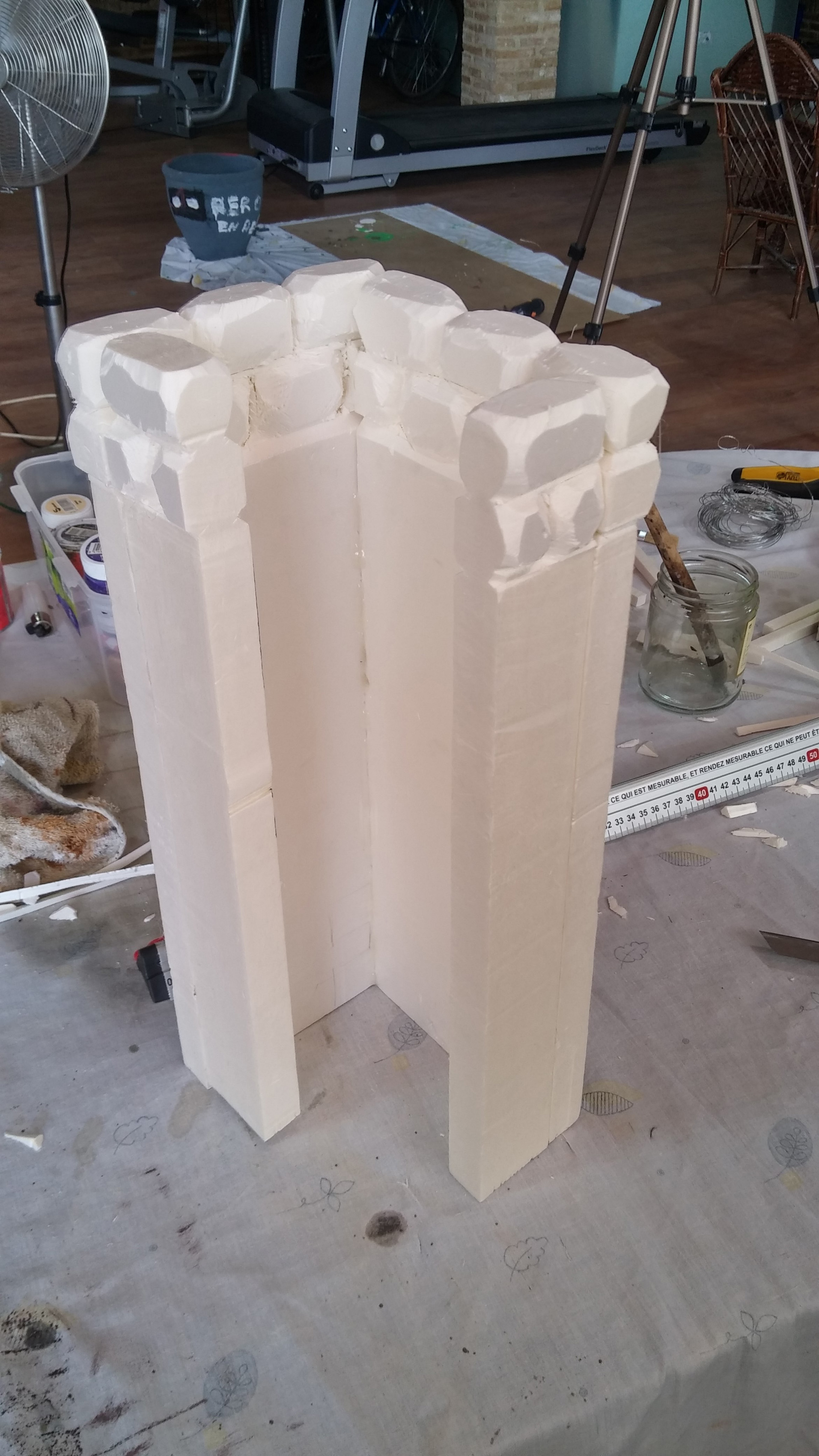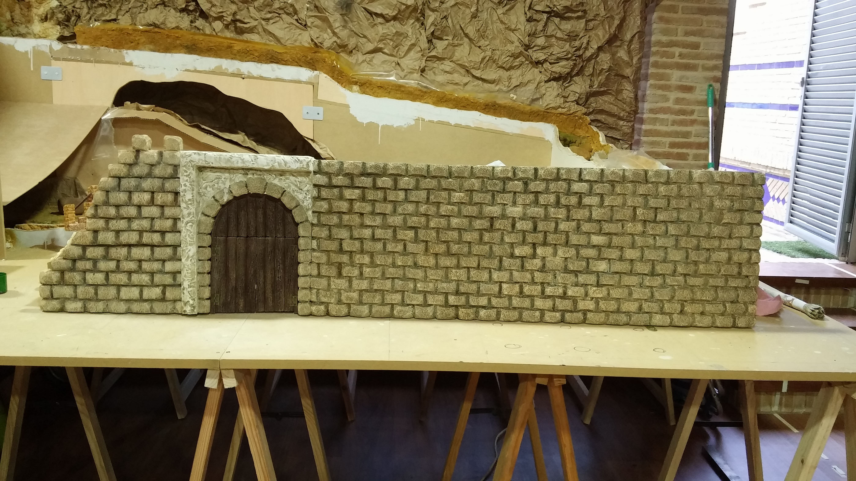 20150426_201818.jpg (847KB - 232 descargas)A la principal puerta de la muralla le faltaba la pilastra derecha, como alguno de vosotros bien dijo, que ya está acabada. Decidimos que en la esquina tenía que ir una torreta de control, así que la diseñamos y nos pusimos manos a la obra, trabajo que también acabamos. Y también, respecto a la muralla, estuvimos tallando y enfoscando la 2ª parte de esta, trabajo que no terminamos, pero que sí haremos esta semana que entra pues ya hemos acabado el instituto.