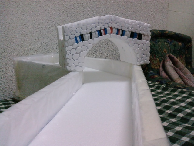Si usáis el POREX, construirla sobre una base de madera o DM para darle consistencia. Ya que una vez que vertamos el agua, aumentará el peso considerablemente.