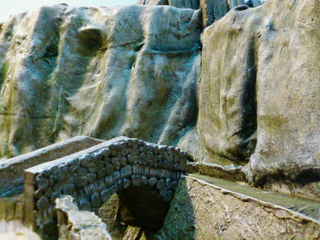 Bueno, ahora me toca fabricar las laderas a lo largo del río, de unos 10 o 14 cms de alto. Pienso hacerlo con POREX, recubrir con escayola la parte que esté fuera del cauce y la parte en contacto con el agua, quizás use cemento y una pintura antigoteras para proteger la pintura.