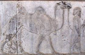 Este es el primer reto: Este tipo de camellos ya nos define una zona de procedencia del Mago de turno. Los magos eran una especie de sacerdotes astrónomos, procedentes de Persia, (actual Irán). Los localizamos en un mapa en la línea que une el mar caspio y el golfo pérsico, "más o menos". A ntigua representación de bactriano en Persépolis