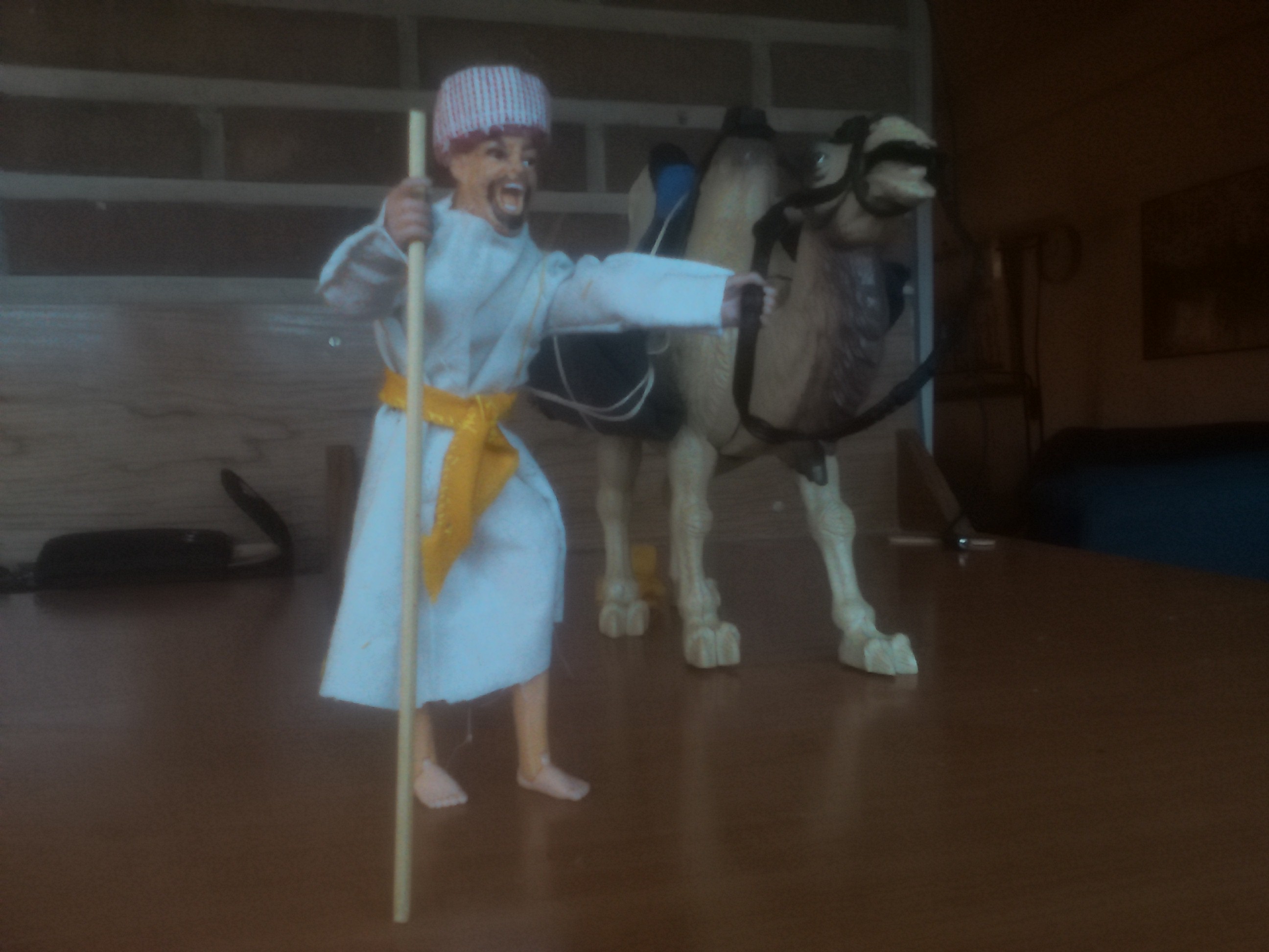 Ahora tocará hacer nueva ropa, mas acorde con el frío, repintar y enmasillas el camello, hacerle los arreos correspondientes... etc.