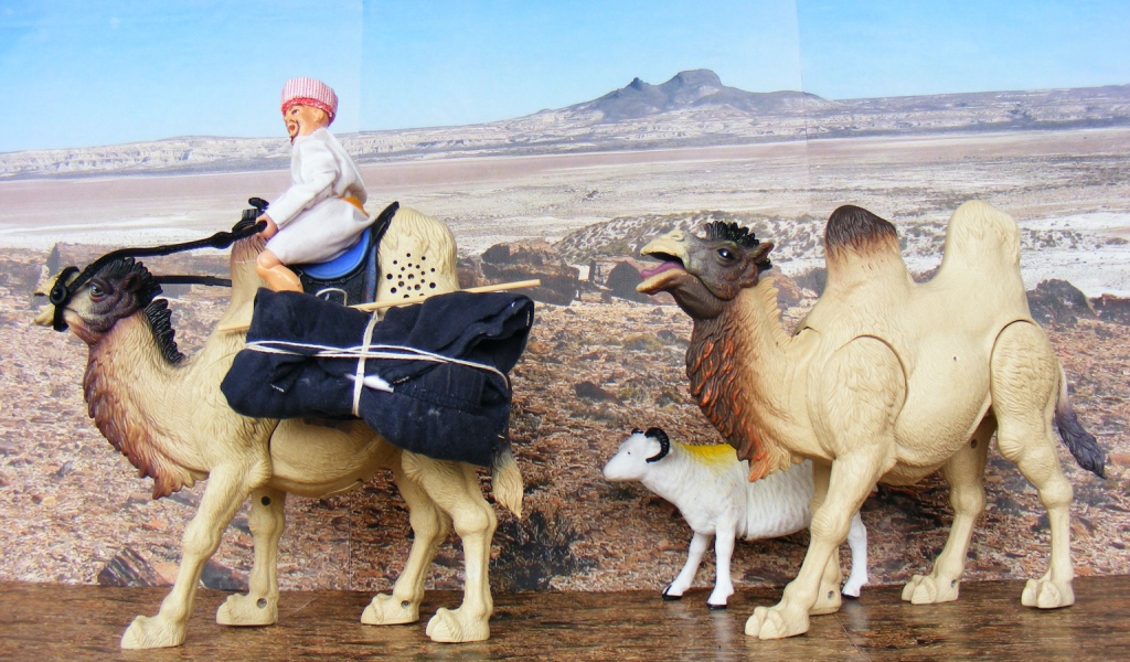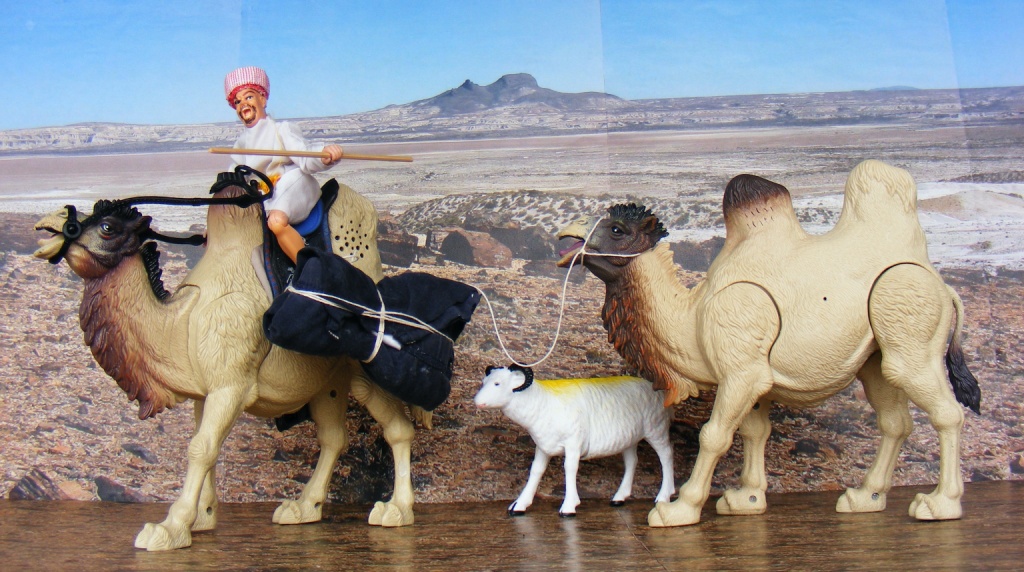 Pues bien, los Bactrianos proceden actualmente de más al este, Mongolia / China. Pero por desgracia no he podido localizar ningún dromedario de 20cm de altura a la joroba, que nos daría una escala de 1:10 que vamos buscando. De todas maneras, se podría suponer que en la antiguedad el hábitat  de los Bactrianos fuera mayor, y llegaran hasta Persia