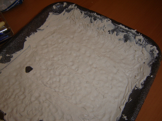 Una vez seca esta primera capa apliqué una segunda y una tercera (todas ellas de unos 2 mm.), dejando entre todas ellas un intervalo de 24 horas para que secara. Debo advertir que al final, cuando queda totalmente seca, la superficie no está dura como un cristal, sino que al tacto es como una silicona superdura que no se deforma al apretar con el dedo ni nada pero que tiene ese tacto más blando del que uno se espera.