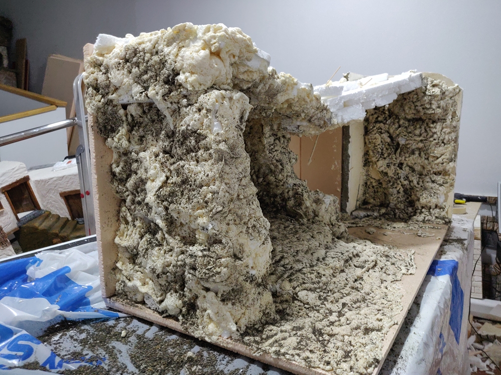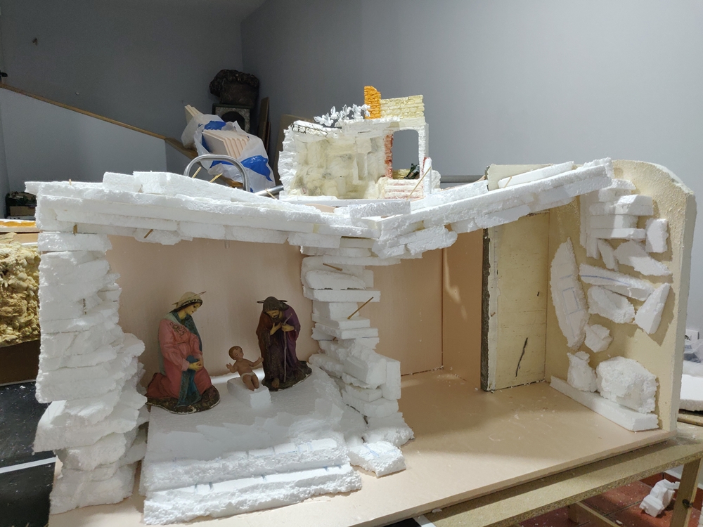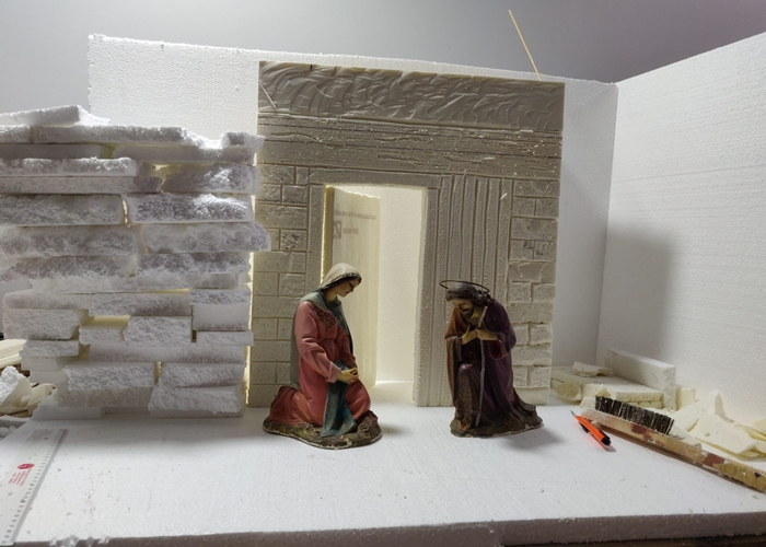¿Has hecho algún dibujo, croquis, esbozo, croquis previo, o vas improvisando sobre la marcha? Lo pregunto porque veo que utilizas las figuras del nacimiento de 36 cm en dos lugares distintos, en la foto (25.jpg) y en la (c1.jpg). ¿Estabas pensando colocarlas en un principio en la (25.jpg) y otro día decidiste colocarlo en un abrigo rocoso, una semi-cueva? Me encanta como has construido este portal, te desenvuelves de maravilla con los distintos tipos de porex.