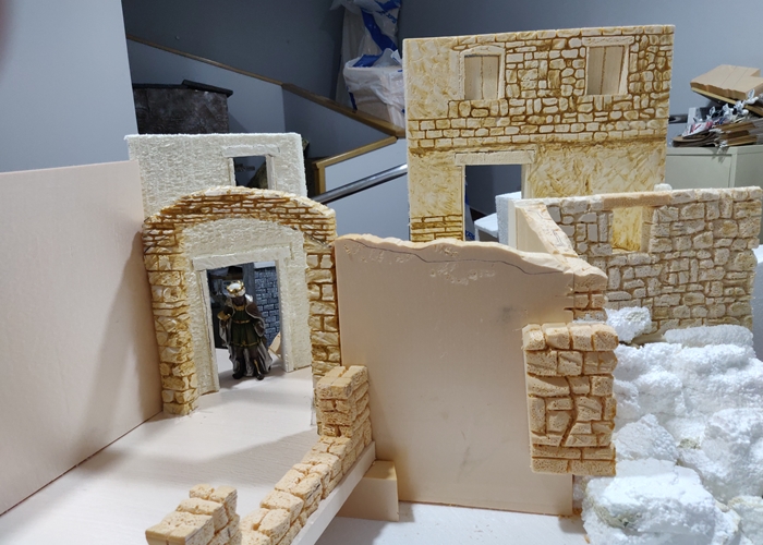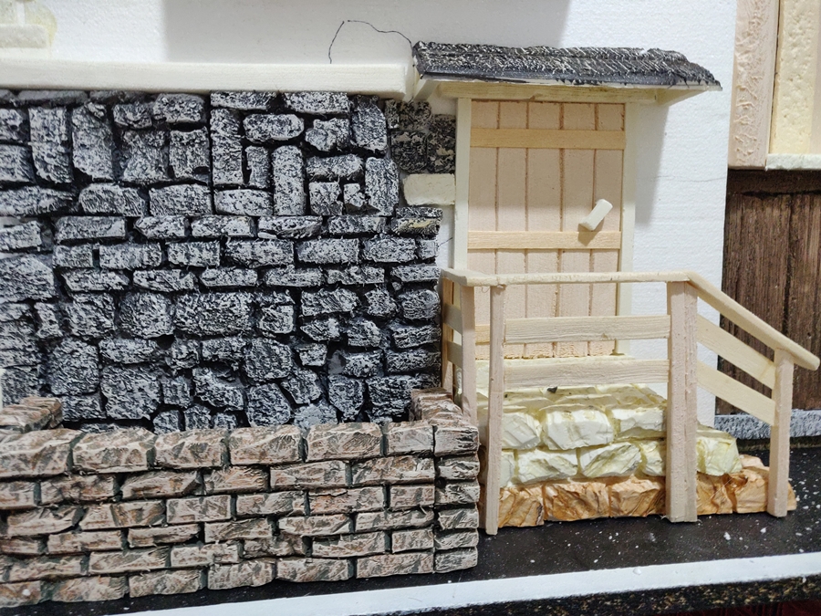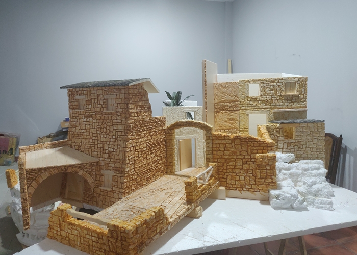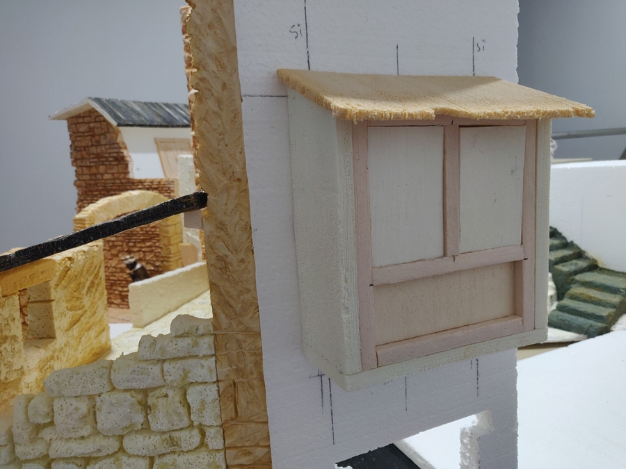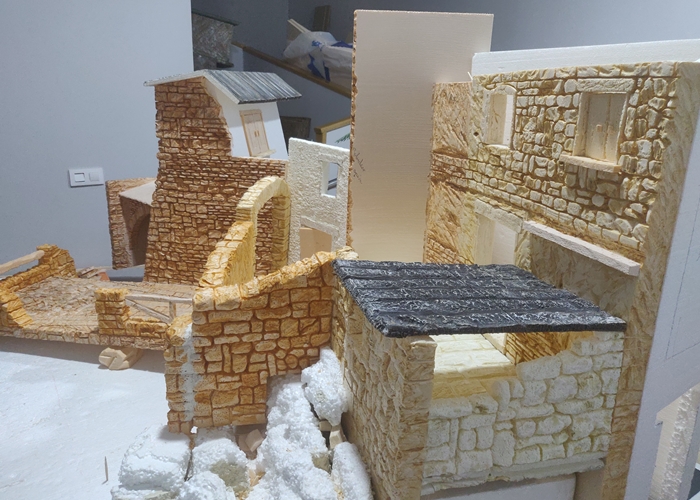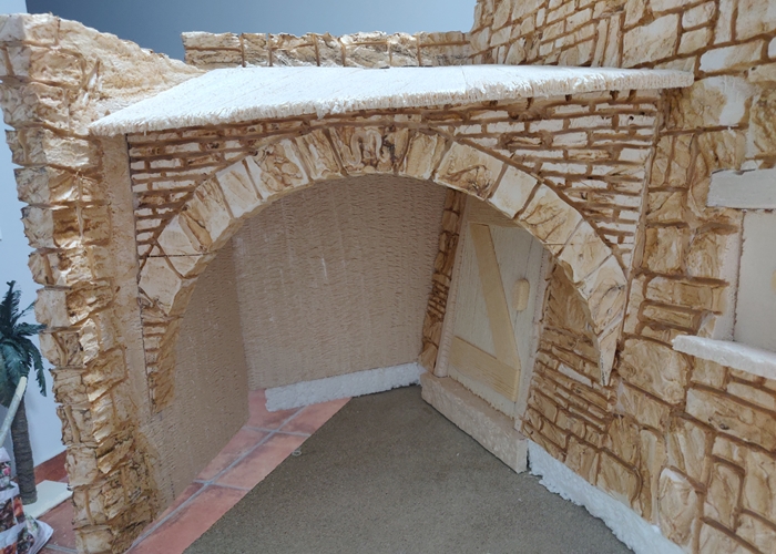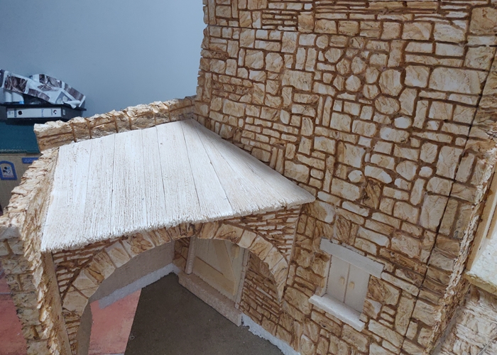 Siguiendo con el proceso que he avanzado un poco, os enseño fotografias de la transformación de una de las construcciones. Esta, se trata de la edificación donde se va a situar la escena del Registro. Está constituida de una edificación con tres viviendas, una de las cuales se va a emplear para presentar la escenificación de La Virgen María y San Jose cuando se trasladan de pueblo para inscribirse en el registro. Como dije anteriormente, dicha construcción parte de una del amigo "Artesano del Belén", el cual ruego me perdone por no haber podido llegar a su perfección en la confección de la misma.