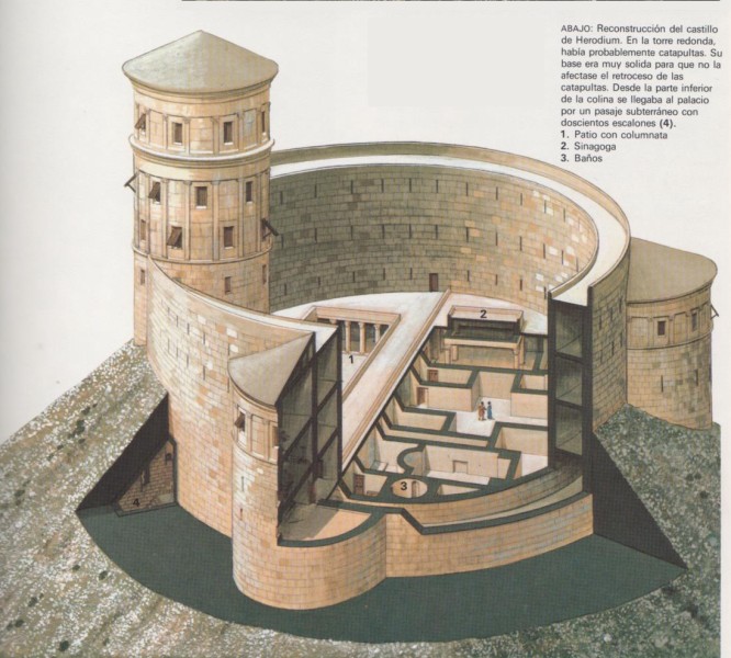 José, en primer lugar te he de comentar que, Herodium, efectibamente era un fuerte, pero ultimamente, se han descubierto al pie del monte que contirne el fuerte, en unas escabaciones, lo que posiblemente fuera era un palacio veraniego, ya que hay espacios que pudieran ser unas "piscinas". Tambien parece ser que han encotrado un sarcofago que podiera ser el de Herodes "El grande"