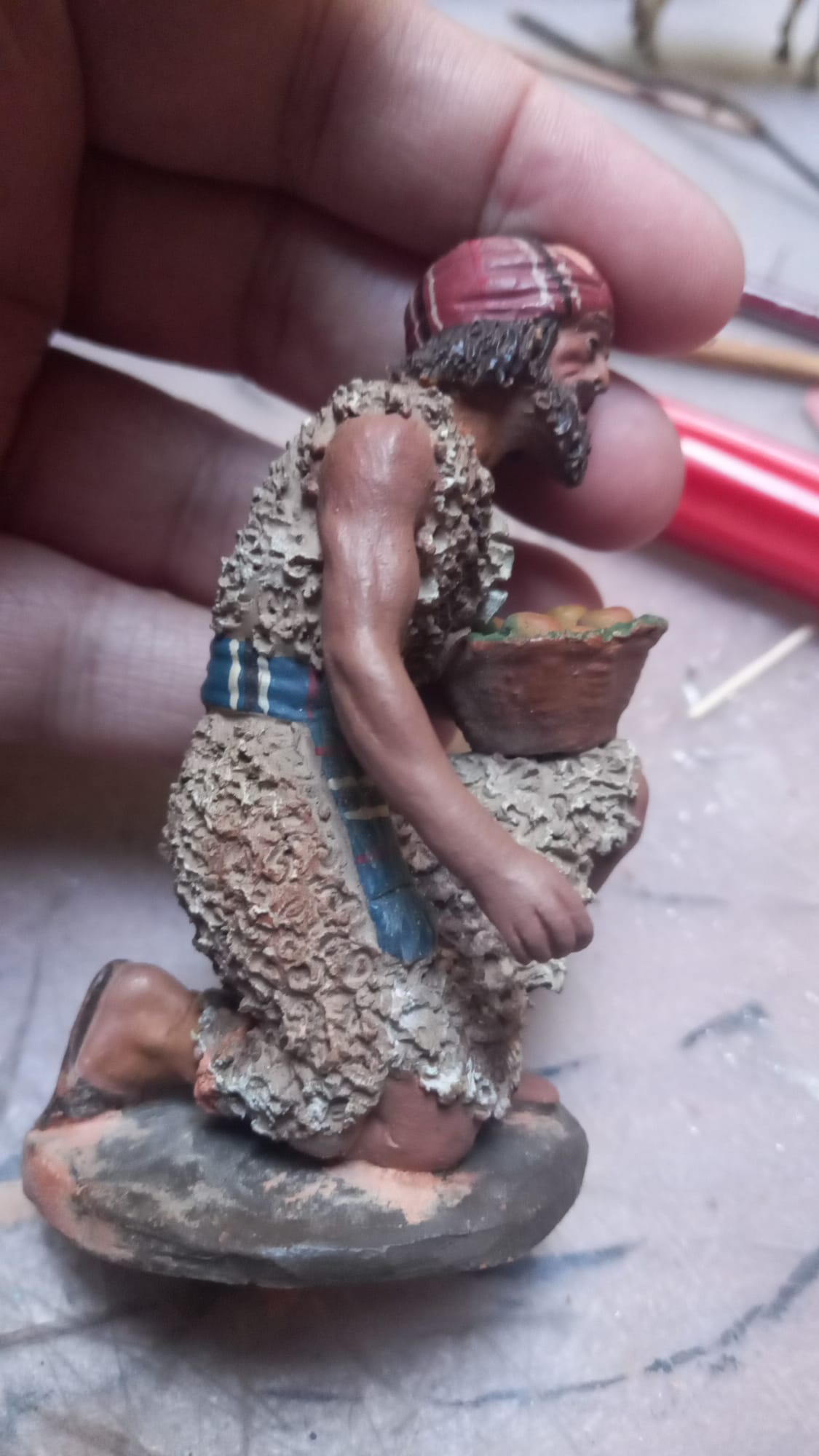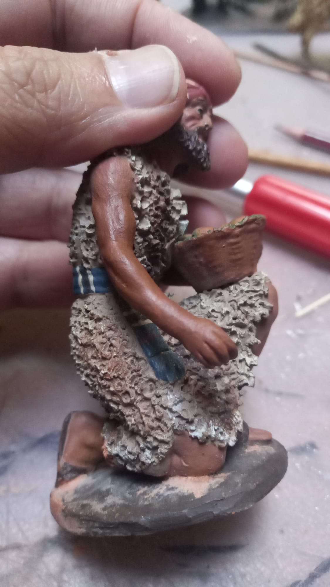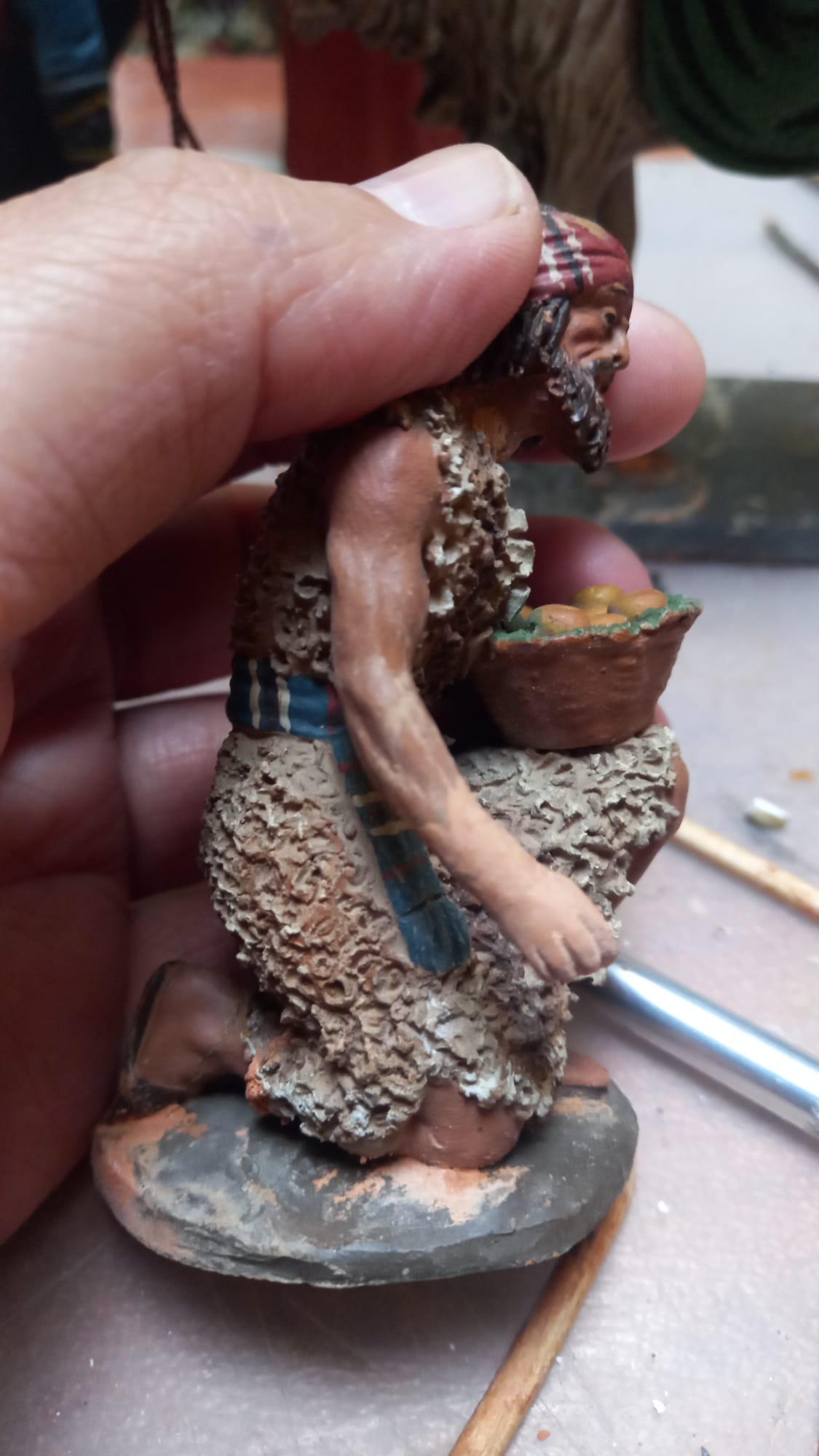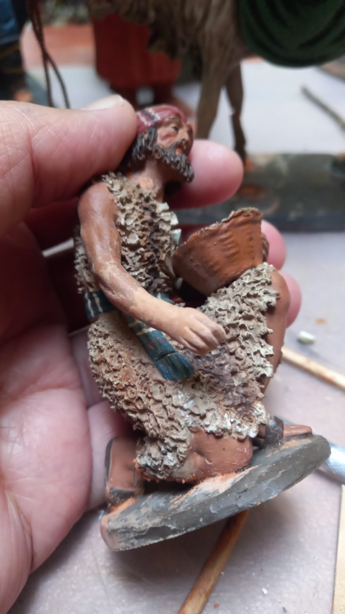 "...con el tamborilero del post superior... la cabeza, el zurrón y el tambor son los mismos, pero lo demás cambia significativamente, lo que demuestra cómo trabajaba Masdeu, de forma muy parecida a los Daniel: utilizaba un molde de cuerpo desnudo, adaptaba la postura de los brazos y "vestía" la figura con una pelliza de barro que va sobrepuesta, muy trabajada."...