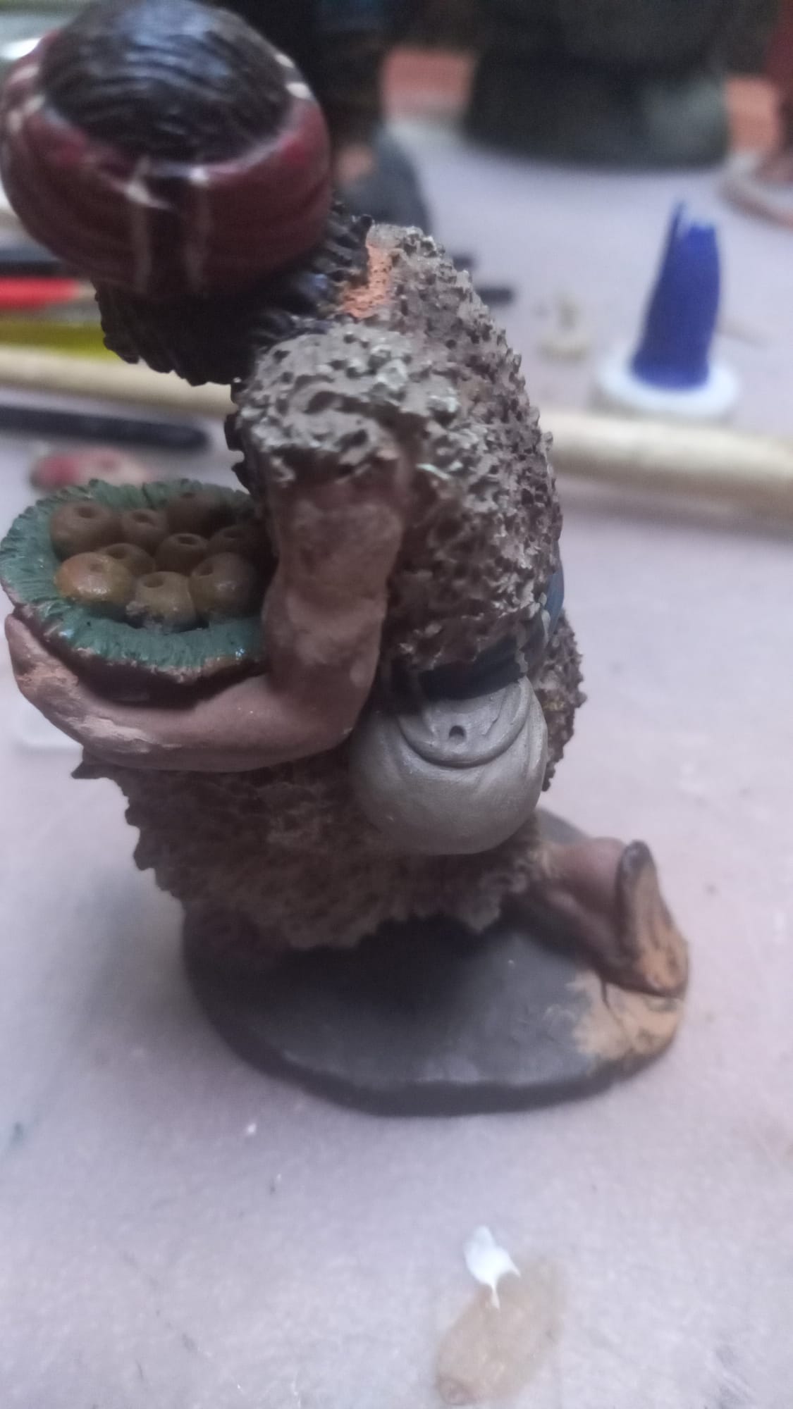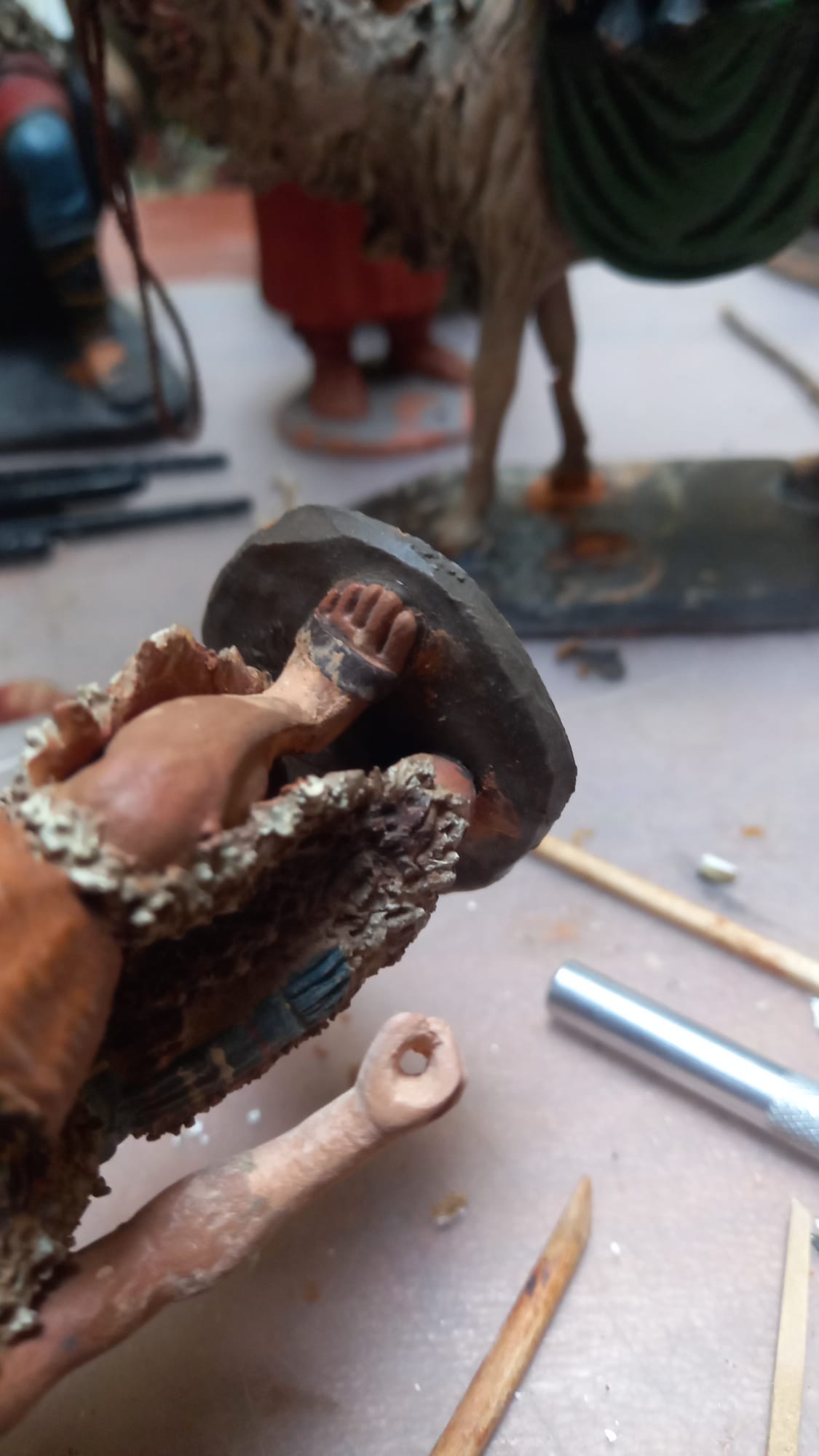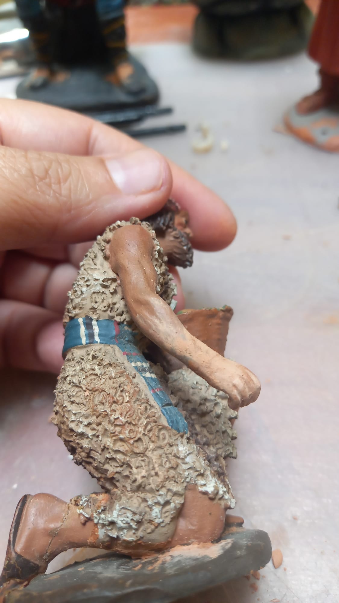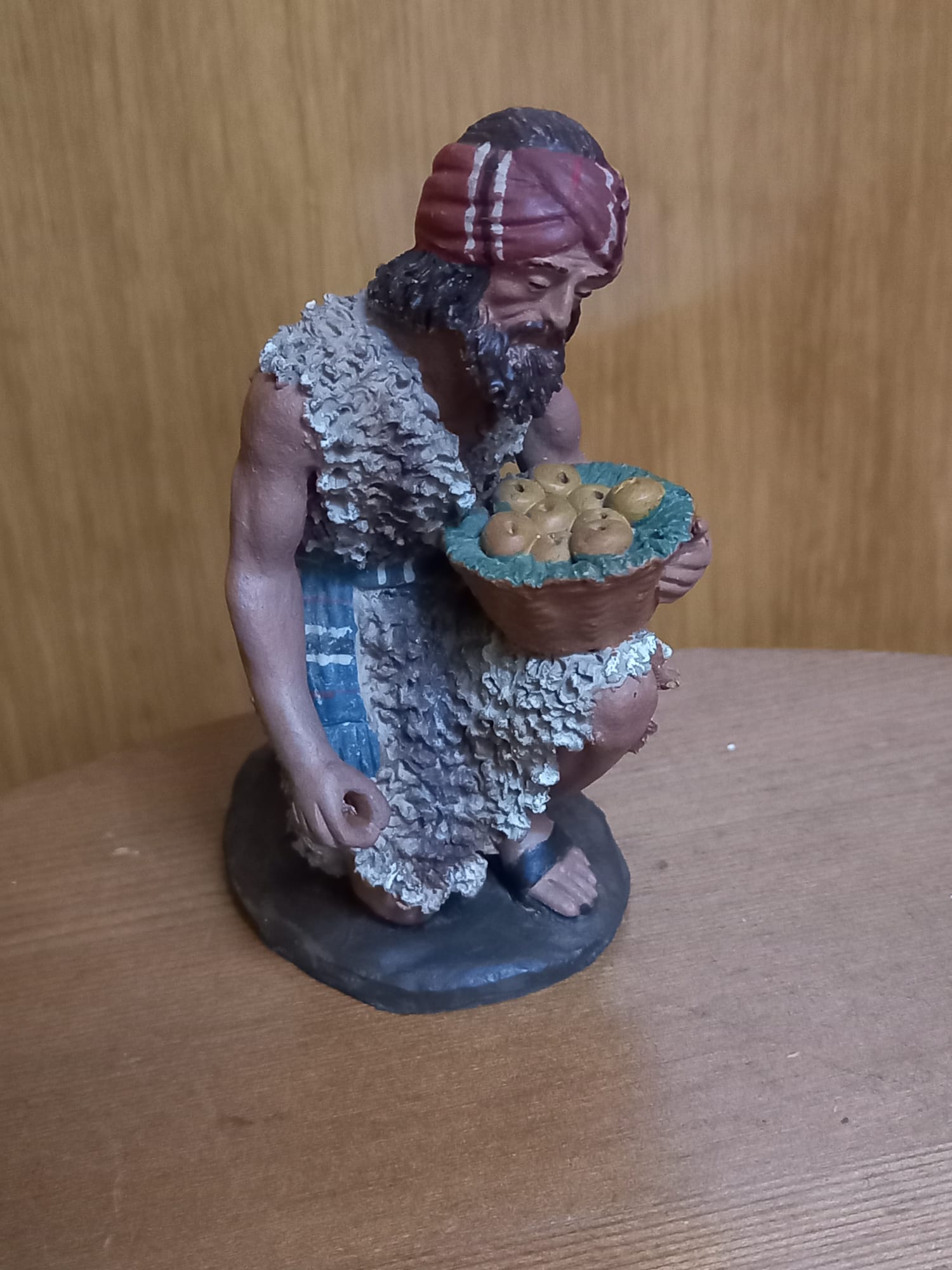 "...con el tamborilero del post superior... la cabeza, el zurrón y el tambor son los mismos, pero lo demás cambia significativamente, lo que demuestra cómo trabajaba Masdeu, de forma muy parecida a los Daniel: utilizaba un molde de cuerpo desnudo, adaptaba la postura de los brazos y "vestía" la figura con una pelliza de barro que va sobrepuesta, muy trabajada."...