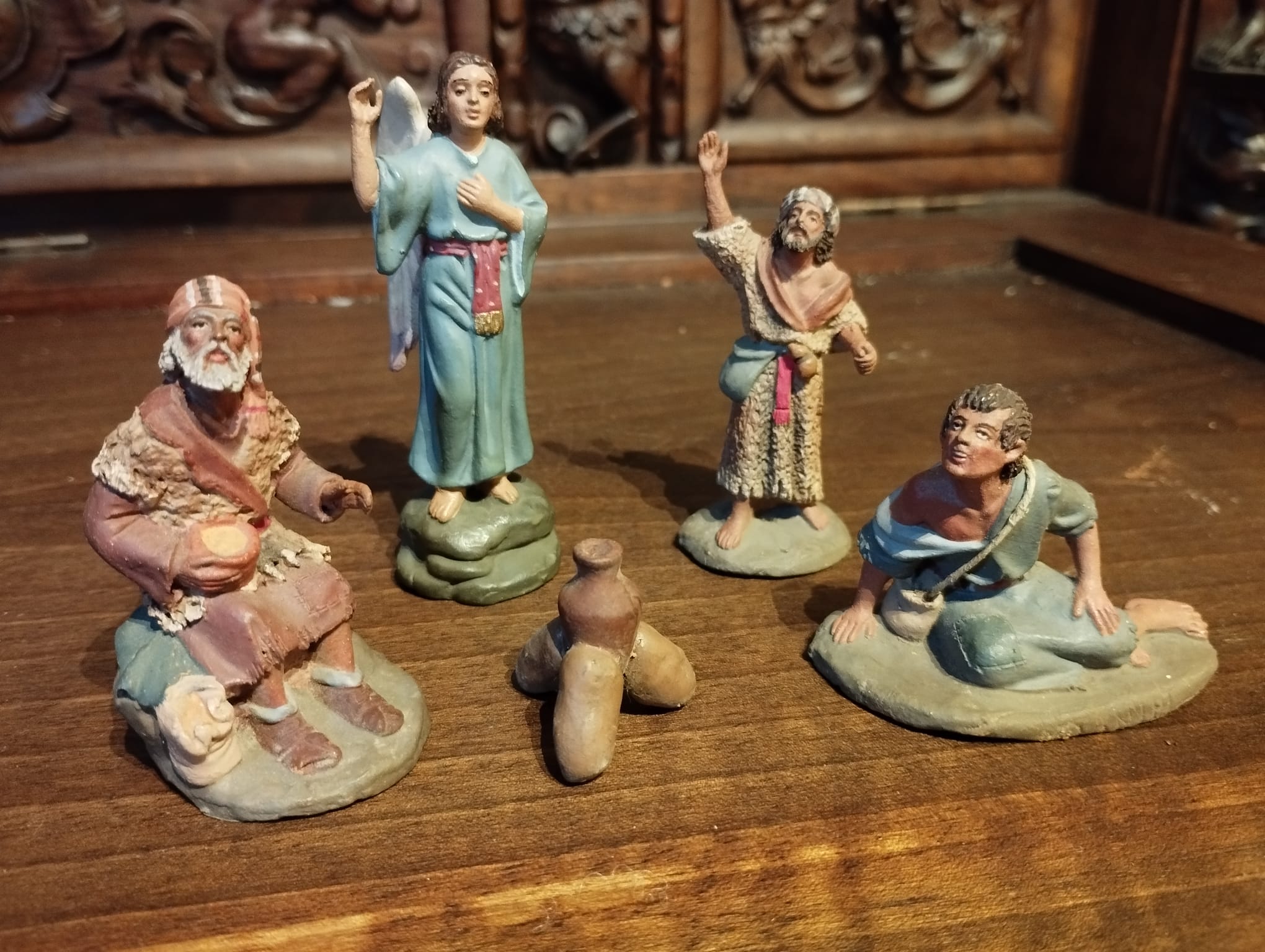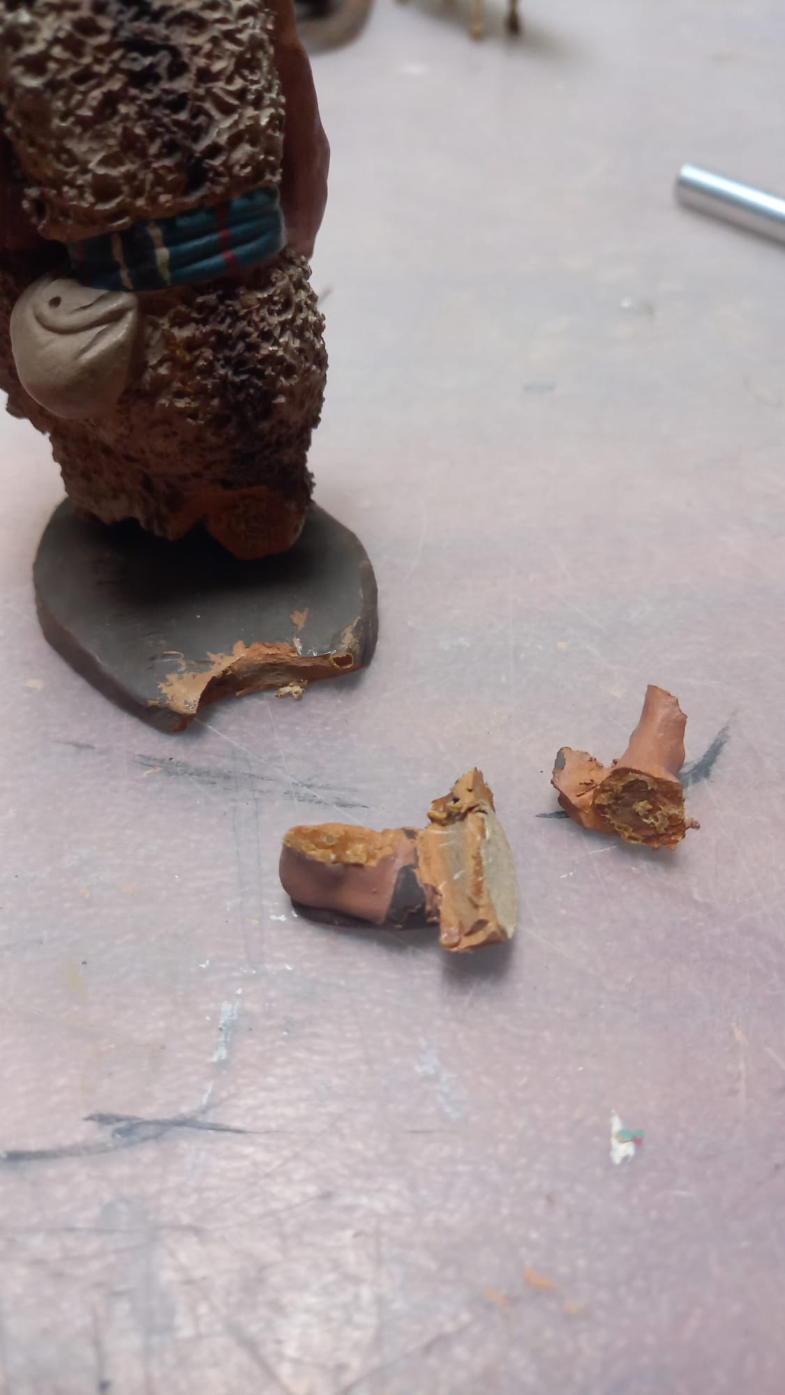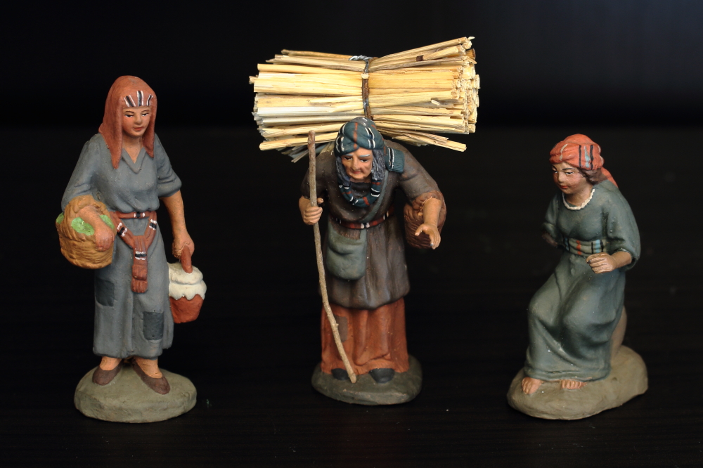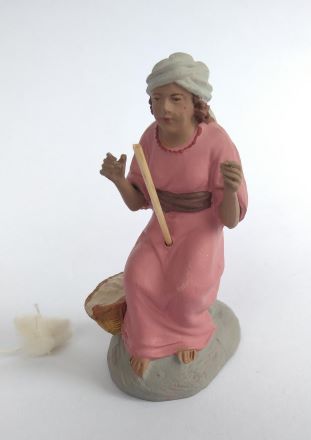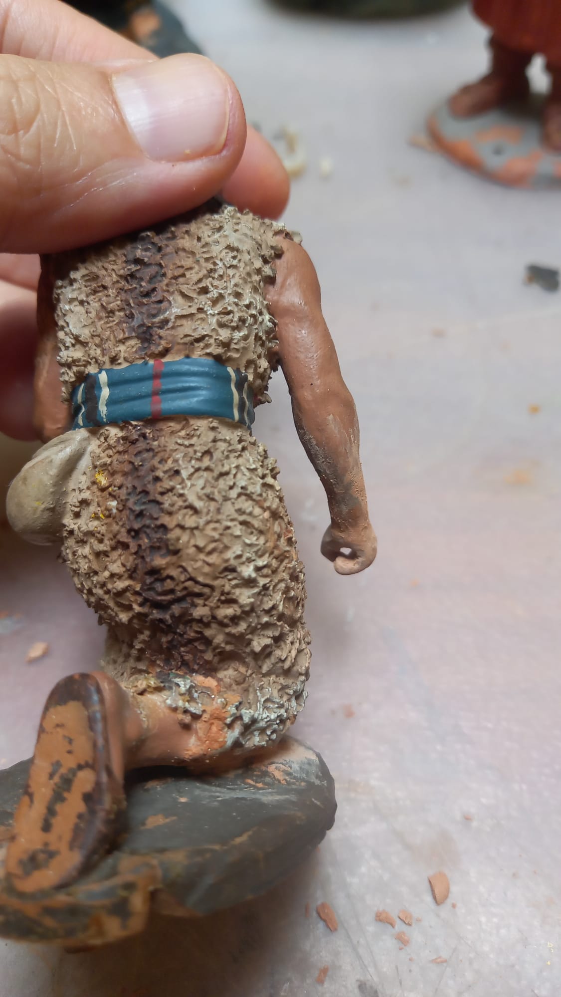 "...con el tamborilero del post superior... la cabeza, el zurrón y el tambor son los mismos, pero lo demás cambia significativamente, lo que demuestra cómo trabajaba Masdeu, de forma muy parecida a los Daniel: utilizaba un molde de cuerpo desnudo, adaptaba la postura de los brazos y "vestía" la figura con una pelliza de barro que va sobrepuesta, muy trabajada."...