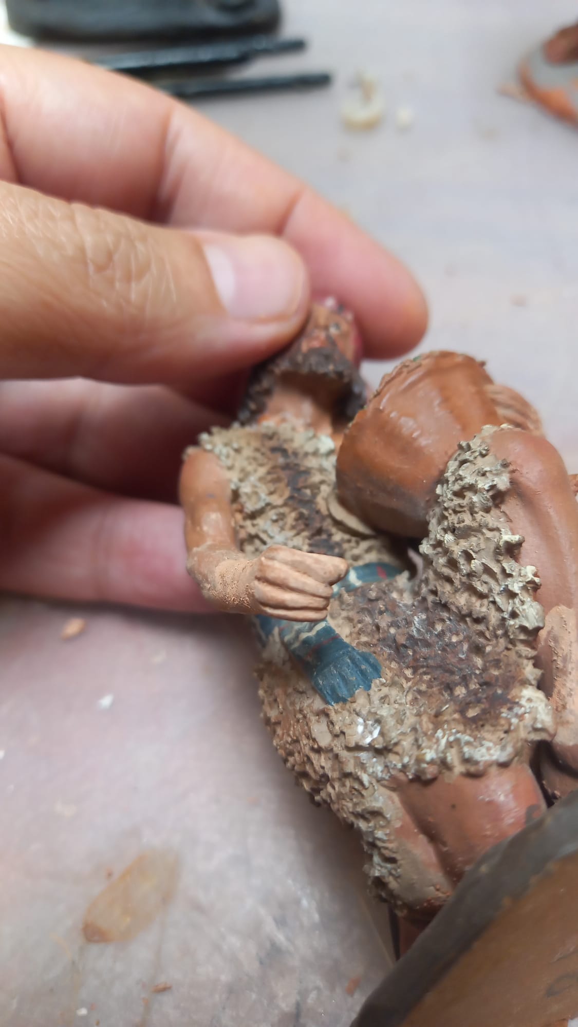 Enhorabuena al restaurador, porque esas manos están hechas de una pasta especial que saben recobrar la vida de lo que entra en su taller... tiene una sensibilidad especial para conocer la figura, para entenderla, y para devolverla a su estado inicial de una manera que no todo el mundo sabe...