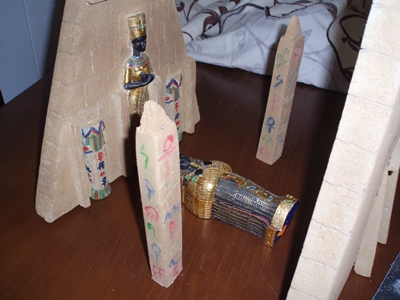 no creo para nada que poner color sea un error, yo que tu lo llenaria de gravaciones como la foto(fantastica) que tenemos arriba, te cuento lo que hice ayer con la parte de arriba de nuestro sarcofago, puse film transparente de cocina por dentro (para que no se manchase, y poder sacarla), meti pasta a presion, yyyyyyyyyyyyyyyyy,no te imaginas la momia tan chula que ha salido, hace de molde perfectamente, ¿para pintarla y adonar el templo? ¿como enterramiento?¿como hallazgo en una escavacion?