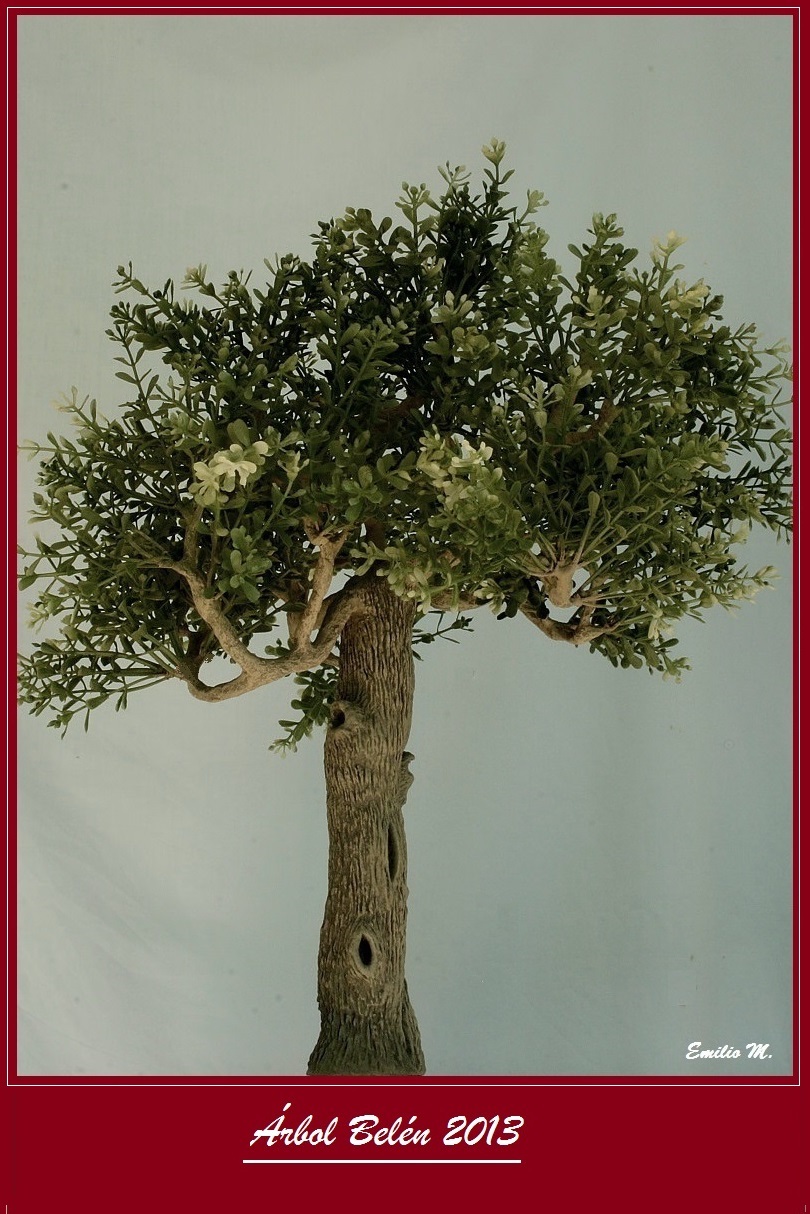 Os pongo las fotos de un árbol, que he construido para colocarlos en el Belén de este año, empleando solamente alambre , masilla adhesiva , pasta de modelar y vegetación de plástico .
