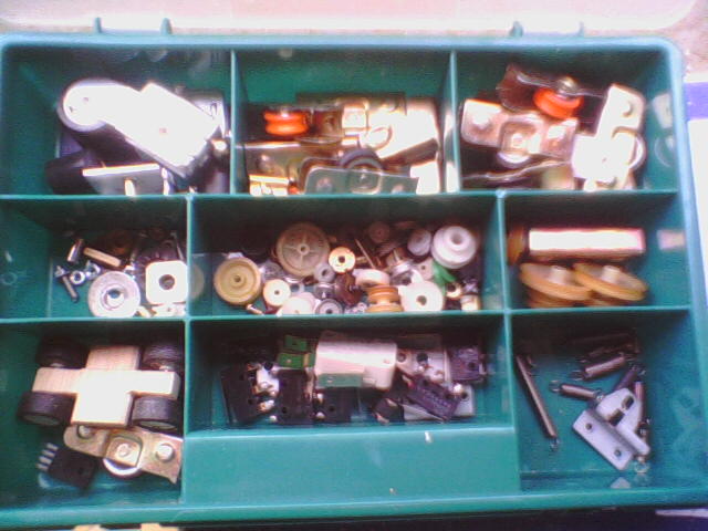 Las poleas son de videos y cassetes averiados, algunas son de guias de puertas de aluminio, muy buenas pues llevan rodamientos.