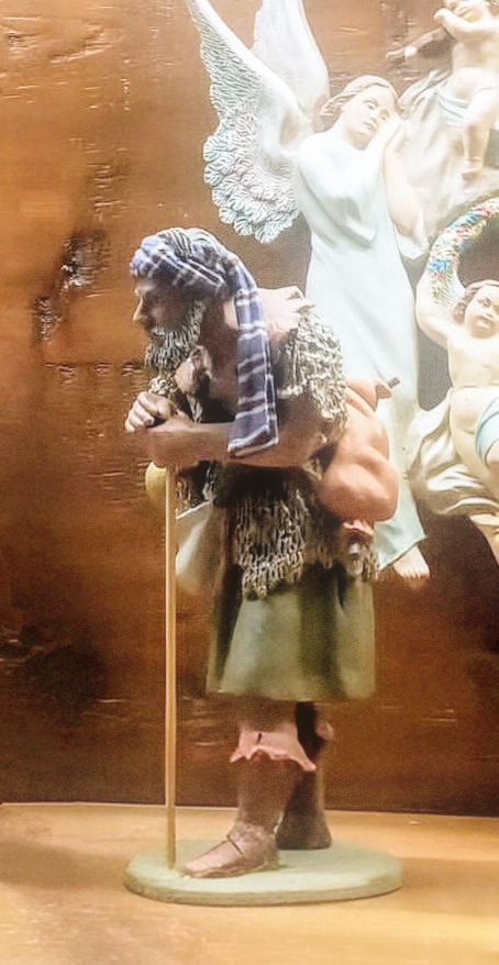 Aquí la representación, como en el pastor 'Manelic', es primordial. El dato interesante es cómo se apoya en el bastón (vara, cayado), con las dos manos, una encima de la otra, y, a su vez, sobre estas, el mentón. Esta postura es, en realidad, la forma correcta de expresar la dualidad entre la vigilancia del ganado y el ensimismo en el paisaje. Esto me recuerda el homenaje a la figura de belén de estas pasadas Navidades, relacionándolo con obras de arte profanas pero muy simbólicas.