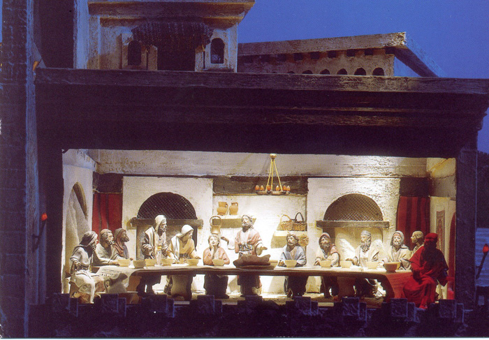 • Frente del cenáculo (aquí había dos ascensores distintos, uno en el propio cenáculo para taparlo y otro en la parte de arriba que hacía salir una figura con diferentes papeles)