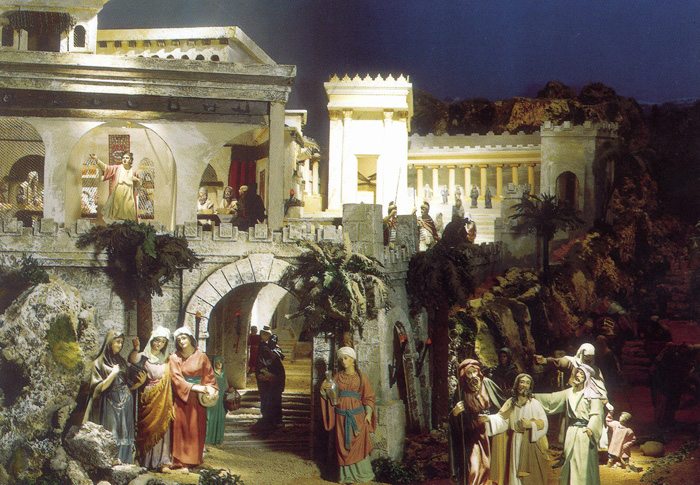 Las figuras de este Belén son de varios autores, destacando sobre todo Mayo y Castells, como habréis podido observar. Es de destacar el Nacimiento, que Mayo “borda”, y en especial en el modelo representado y la entrada a Jerusalem el Domingo de Ramos.