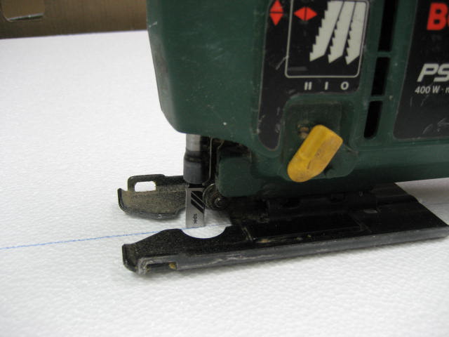 Para cortar trozos de la plancha original,propongo cortar las piezas iniciales no con cuter ni con hilo, sino con una sierra de calar montada con sierra especial para cortes de materiales blandos.Paso a poneros unas fotos y como podreis ver los cortes son perfectos y no se desprenden las tan molestas "bolitas".