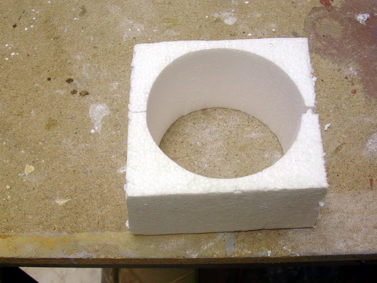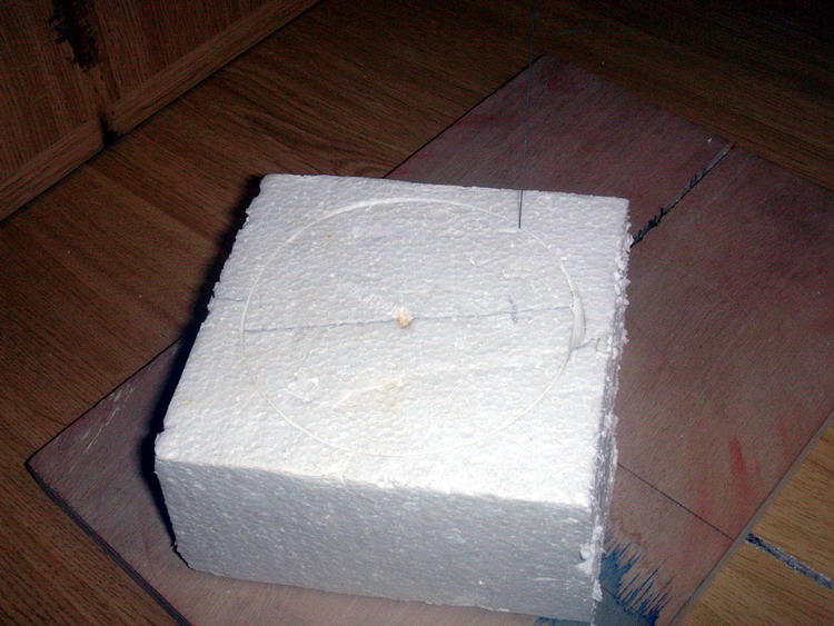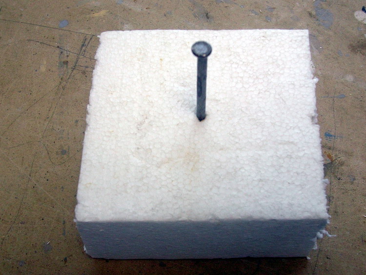 1º se marca el centro y con un clavo u otro elemento se pasa de lado a lado del porex.(foto 2)