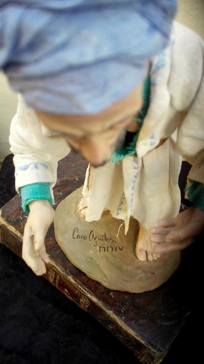 Os muestro otra de las últimas piezas acabadas. En 30 cm, realizada en barro de Lebrija, policromada al óleo y vestida. Foto durante el proceso y terminada. ¡Espero que os guste!