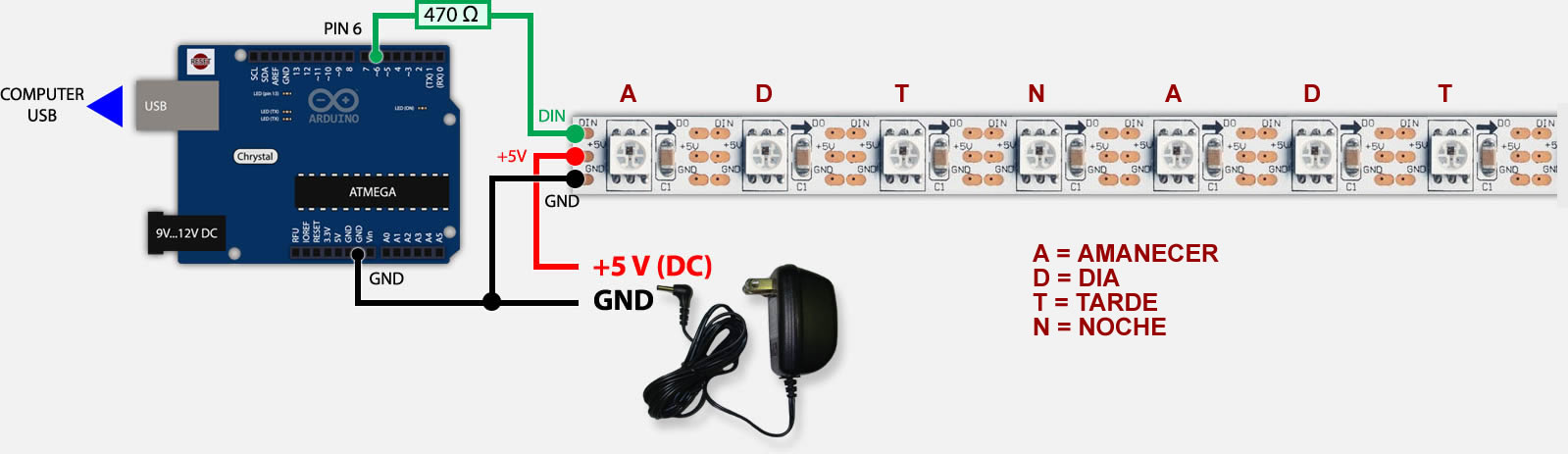 Te comento que he agregado las fuentes de poder externas tanto para el Arduino como para la tira LED.