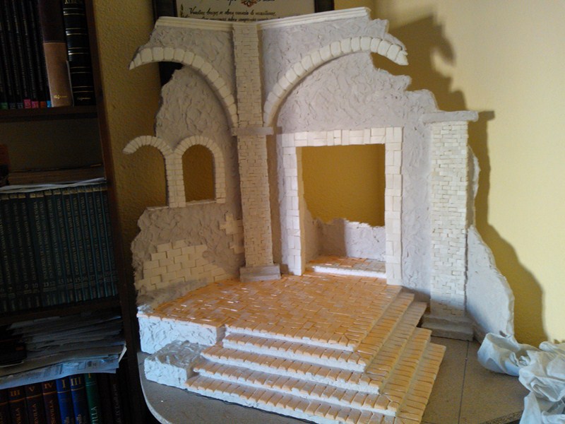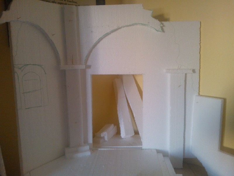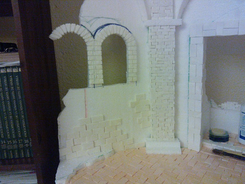 Me gusta mucho como lo llevas,pero creo que el arco de la izquierda no se sostendría,creo que si lo recortaras un poco quedaría más creíble.