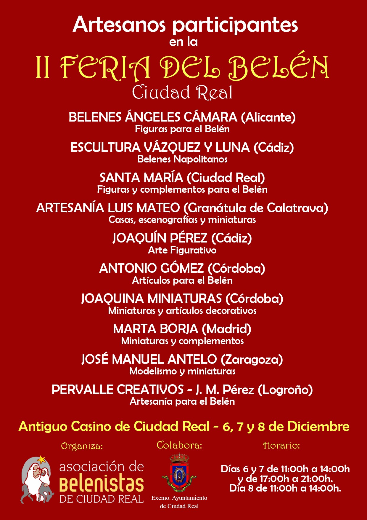 Nos alegra comunicaros que, tras el éxito alcanzado en su primera edición y por segundo año consecutivo, la Asociación de Belenistas de Ciudad Real ha organizado la II Feria del Belén de nuestra ciudad.