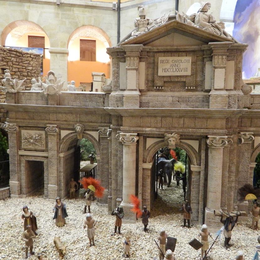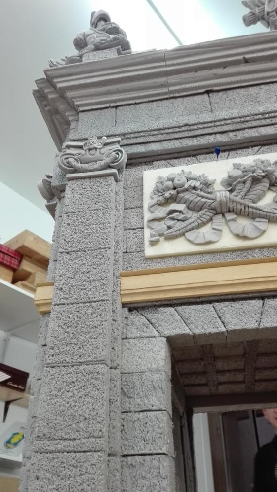 Con motivo del tercer centenario del Nacimiento de el Rey Carlos III, la Asociación de Belenistas de Madrid quiso hacer un homenaje al que fuera el mejor Alcalde de Madrid, y que mejor escaparate que la Sede de la Comunidad de Madrid en la Puerta del Sol, tuve el gran honor de aportar mi granito de arena junto a mi compañero Javier Garcia, y hacer una reproducir de la famosa Puerta de Alcala. A simple vista parecía facilona, pero una vez que te pones a mirarla con detalle empiezas a descubrir que tiene mas de 15 cornisas diferentes, 3 cabezas de leones, 2 cornucopias, 6 armaduras completas, 2 guirnaldas, 4 virtudes, la Fama que sujeta un escudo de armas y el genio representado por un niño, 8 pilastras 12 columnas con su peanas y capiteles correspondientes, y así cientos de detalles, se han utilizado ciertos artilugios inventados para ciertas piezas, total un sinfín de detalles que acabaron en este trabajo que a continuación quiero enseñaros y espero que os guste . Gracias y un abrazo