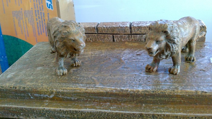 Hola a todos! He descubierto estas maravillosas columnas de 35 cm. para mi Belén. Son de plástico rígido y van huecas por dentro. El problema que tengo con ellas es que veo que son demasiado perfectas y lisas y que cuando las ponga en mis construcciones, se van a notar como un pegote aunque las pinte, ya que se supone que deberían de tener una textura pétrea similar a toda la construcción de porex. Mi pregunta es si se os ocurre alguna idea para texturizarlas y que queden mas integradas... Yo habia pensado darles con un poco de disolvente universal para deslustrar el plástico y que tenga mas agarre y a continuacion embadurnarlas con cola de carpintero y espolvorearlas con arena de playa, pero no sé como se quedará este "invento". Espero vuestras sugerencias. Gracias!!