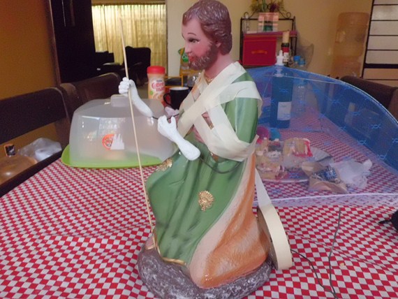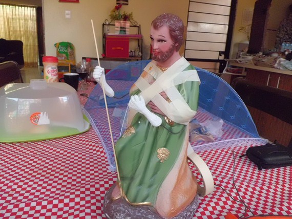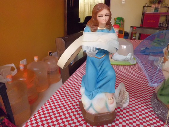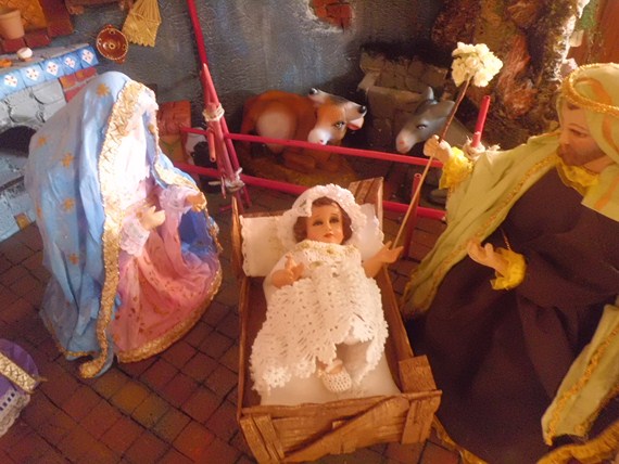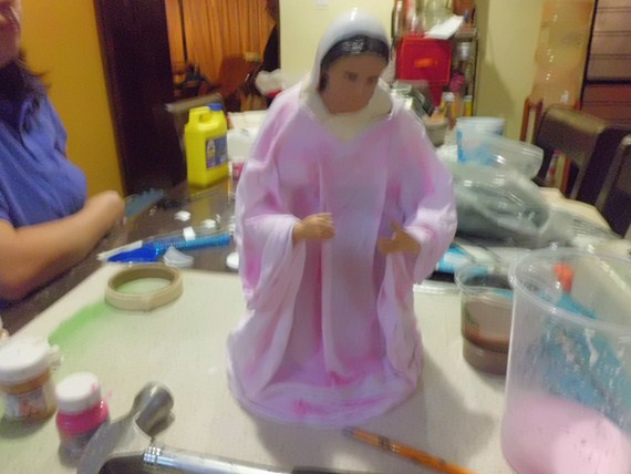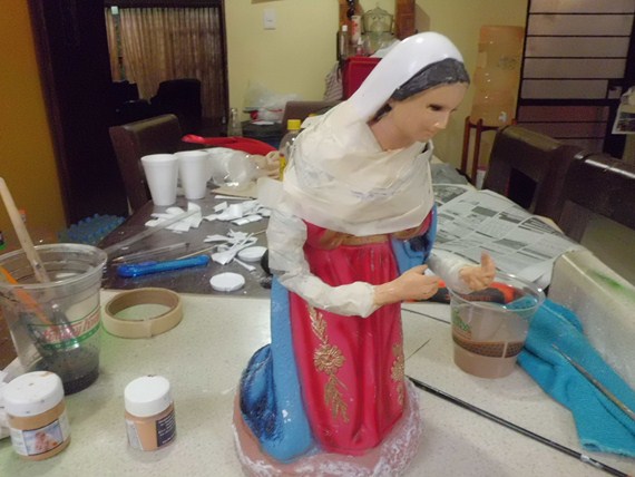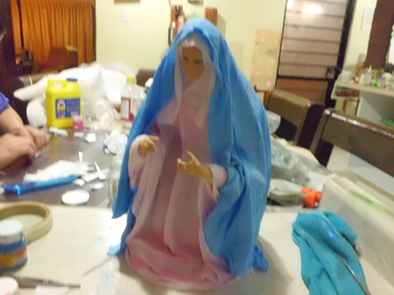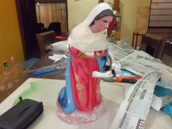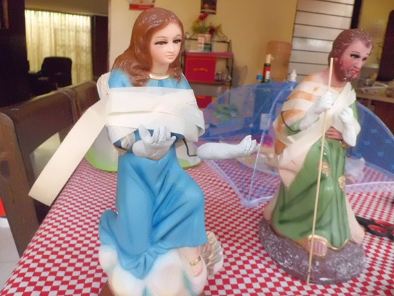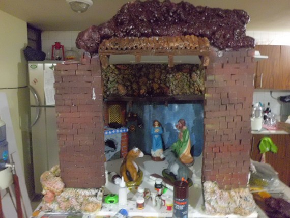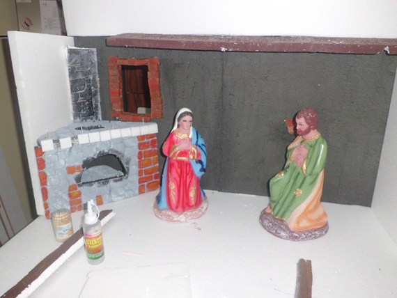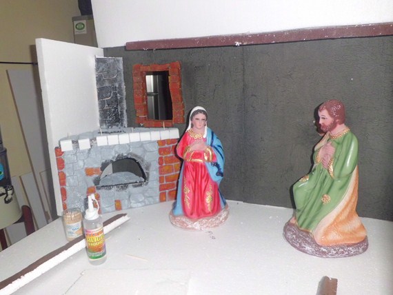 Durante este mes de vacaciones, realizamos mi hermana Vivis y yo este portal para su belén, cambiamos de posición las imágenes de san José y la Virgen y un ángel, los vestimos con el procedimiento de tela encolada de Lolita Temprado y a mi juicio quedaron lindos, ojalá os agraden.