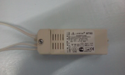 Foto 31 Lámpara dicroica con su latiguillo de conexión. Creo que 35W serán suficientes.