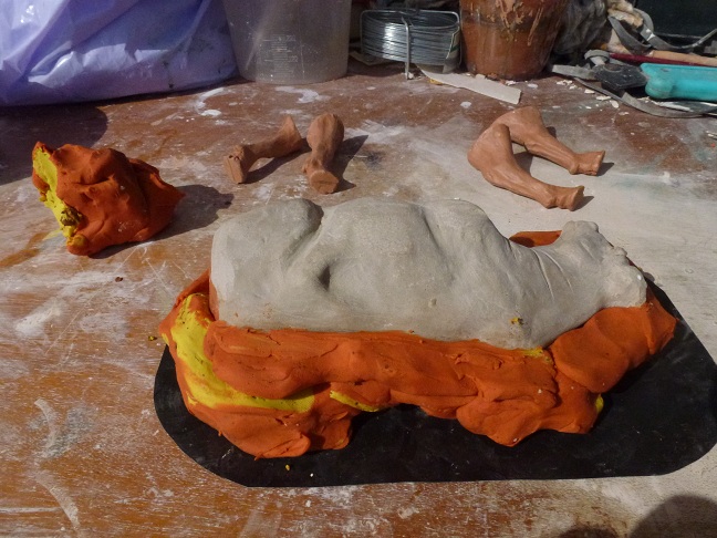 Tanto en las bases como en las esquinas, se debe poner plastilina o barro para que no tenga escape la escsayola o la silicona del molde.