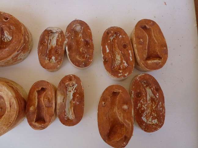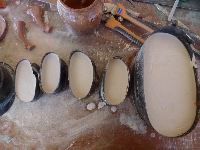 ASSOR.La explicacion de confeccion de moldes que he expuesto es para la reprodución de figuras en barro ( que proximamente pondre un paso a paso de como se reproduce). Para estos moldes, así como para la reprodución de las figuiras, utilizo la barbotina como desmoldeante; la barbotina es simplemente el barro seco y hecho papilla con agua . Lo mas comodo es hacer una lamina de barro, dejarlo secar y pasarle un rodillo de madera, como los utilizados en cocina para las masas de harina y luego haces una papilla clarita con agua, esto es lo que en ceramica se llama barbotina.