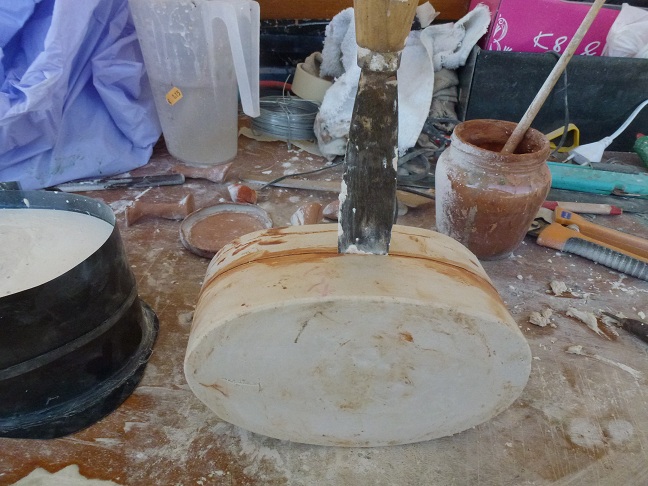 23-Volvemos a pintar con barbotina la pieza y la escayola.