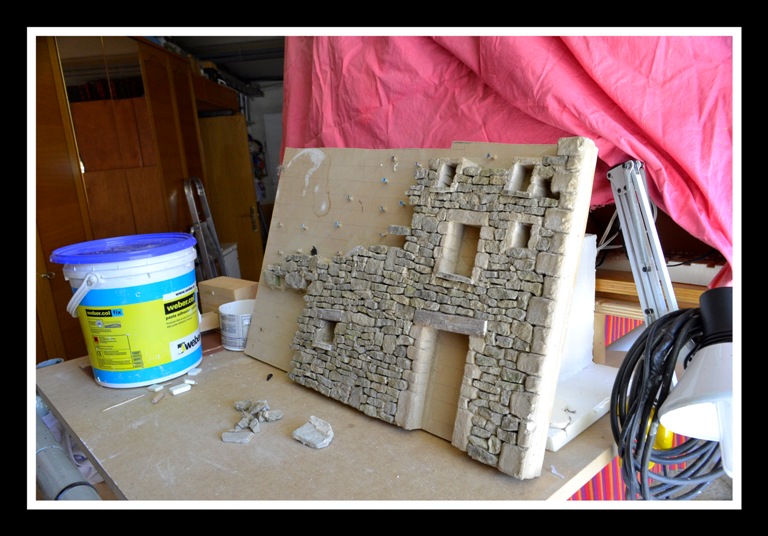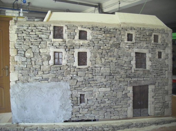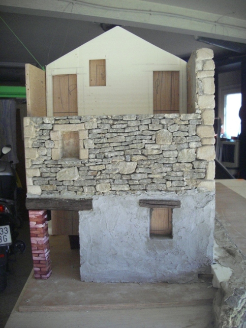 Oyeeeeee,esto está fenomenal jajaja,lo que tiene que pesar esto Dios mío,pero me encanta como se te está quedando...Una pregunta,al pilar le darás algunas veladuras no? Se ve demasiado cantón al lado de la piedra....Las ventanitas me encantan jejejje.